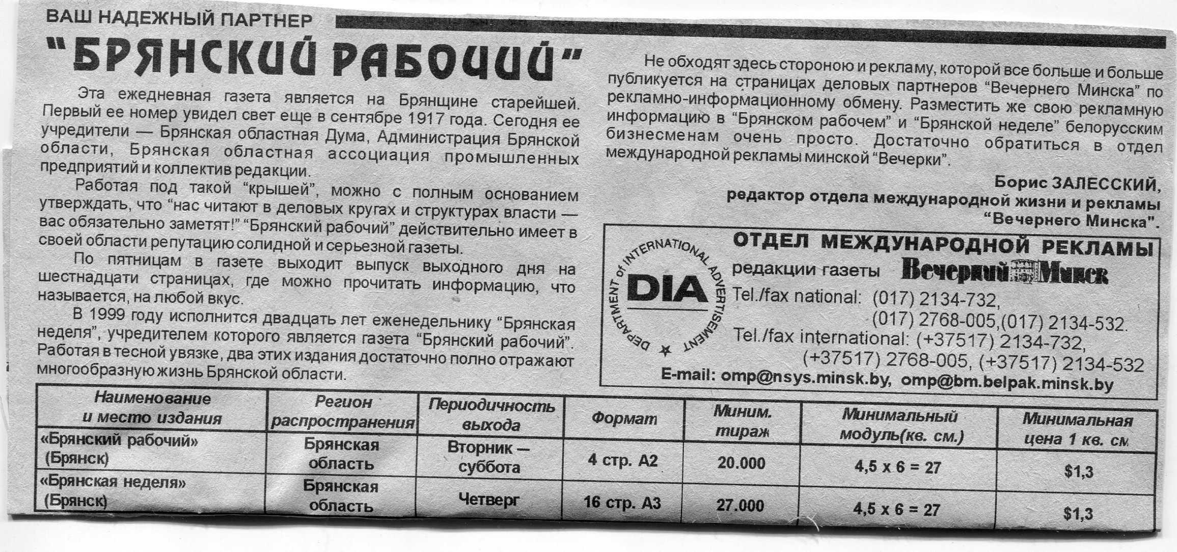 Залесский, Б. "Брянский рабочий" / Б. Залесский // Вечерний Минск. – 1997. – 31 дек.