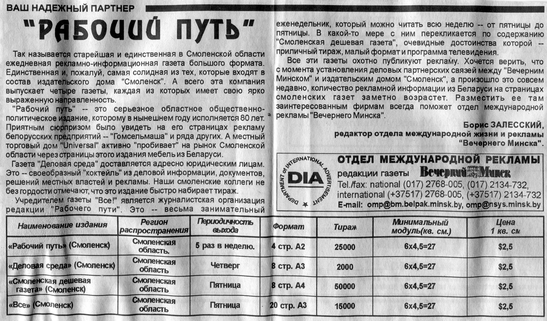 Залесский, Б. "Смоленск-97" / Б. Залесский // Вечерний Минск. - 1997. - 22 авг.