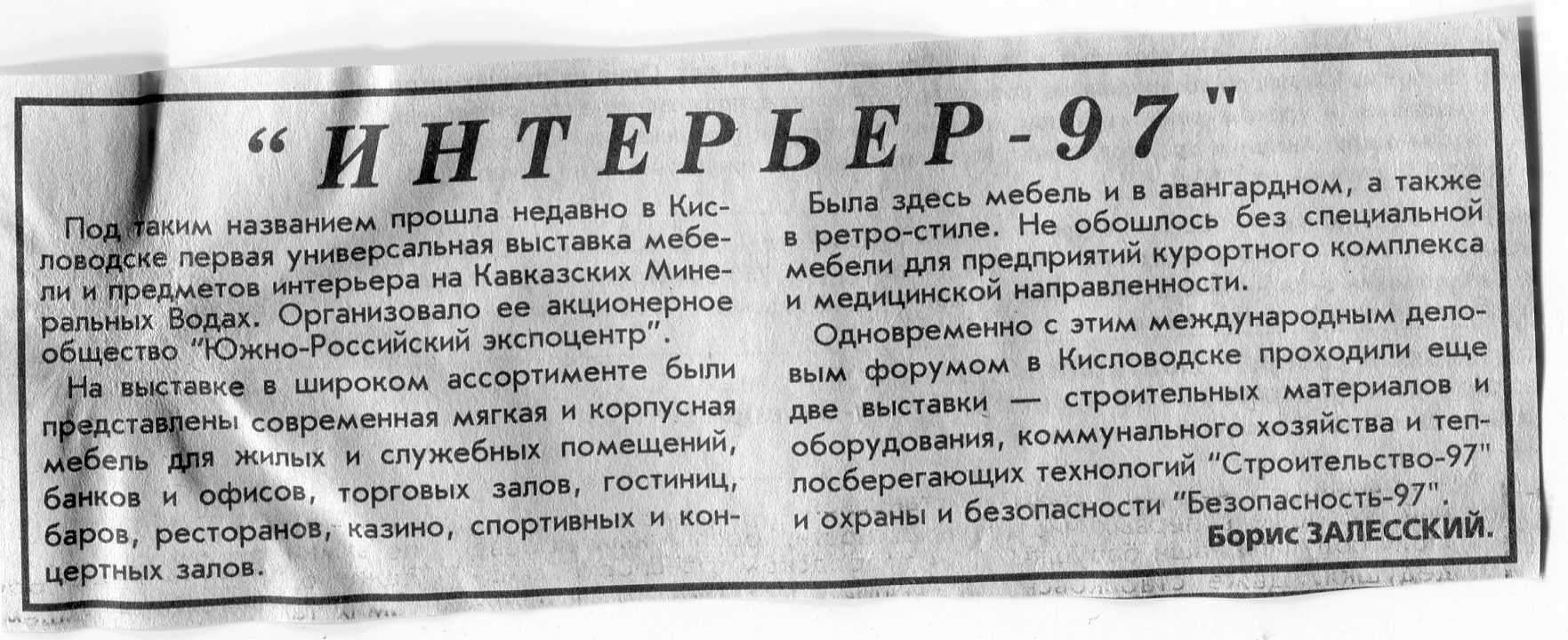 Залесский, Б. "Интерьер-97" / Б. Залесский // Вечерний Минск. - 1997. - 6 авг.