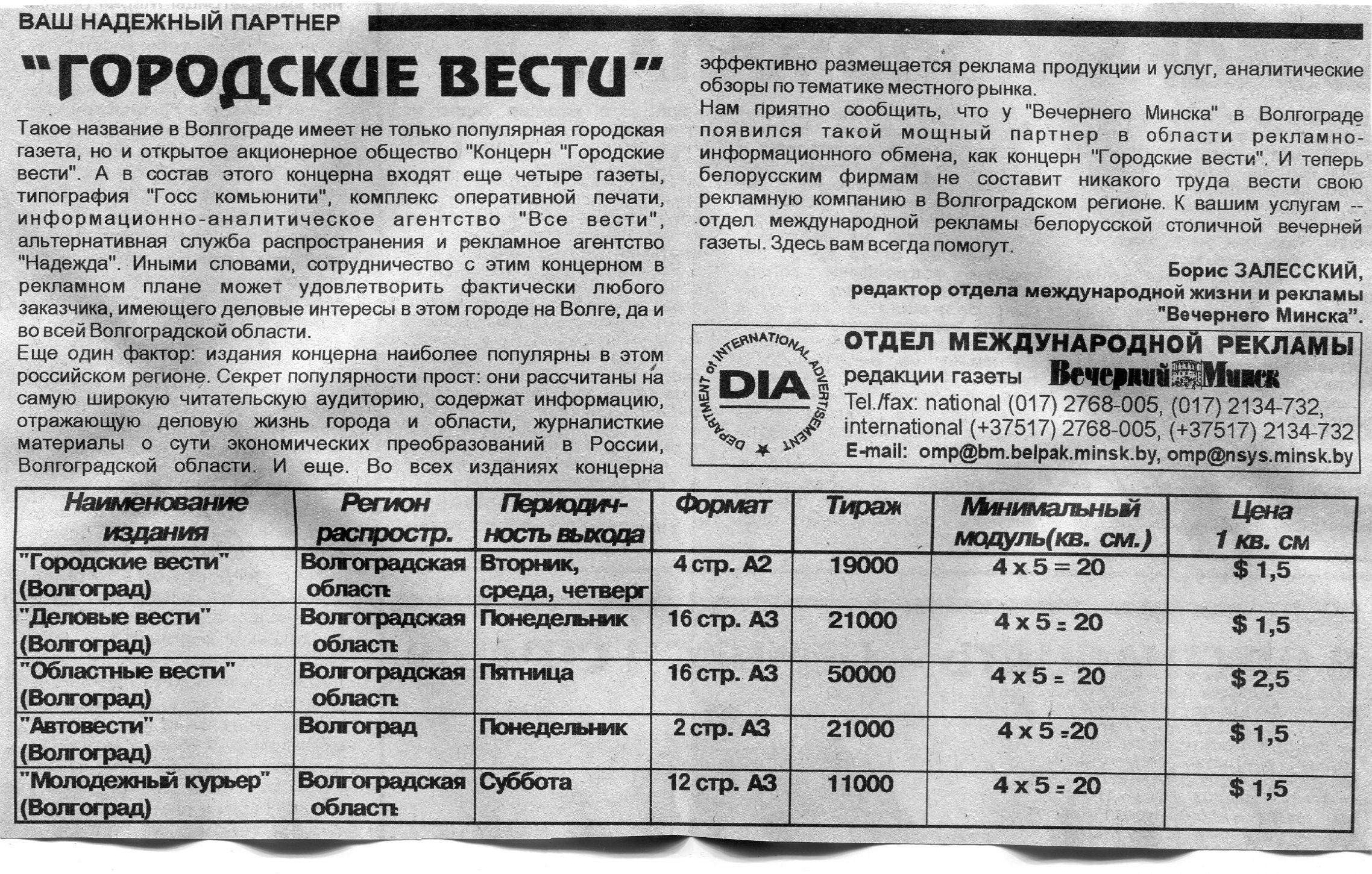 Залесский, Б. "Городские вести" / Б. Залесский // Вечерний Минск. - 1997. - 2 июл.