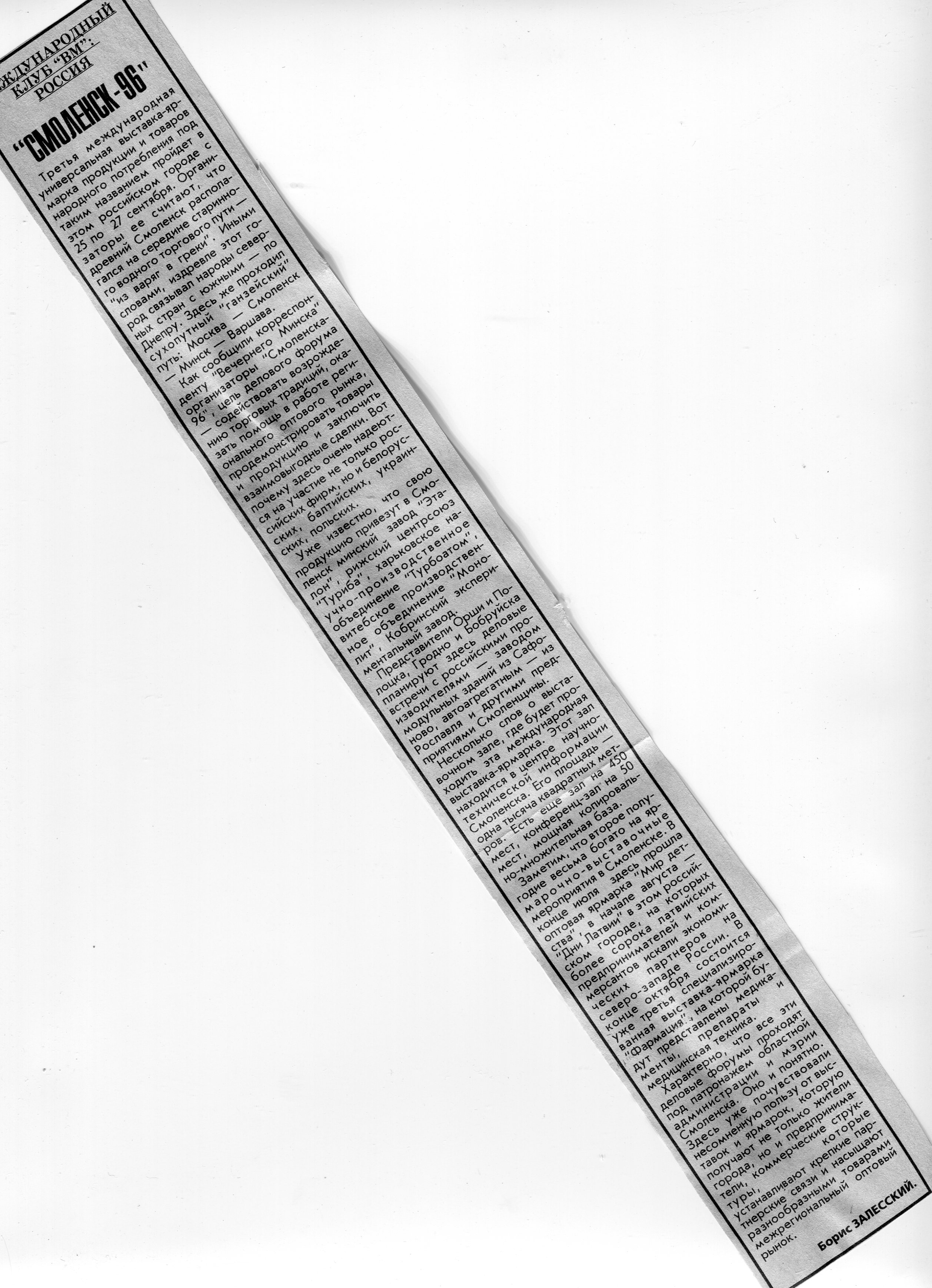 Залесский, Б. "Смоленск-96" / Б. Залесский // Вечерний Минск. - 1996. - 11 сент.