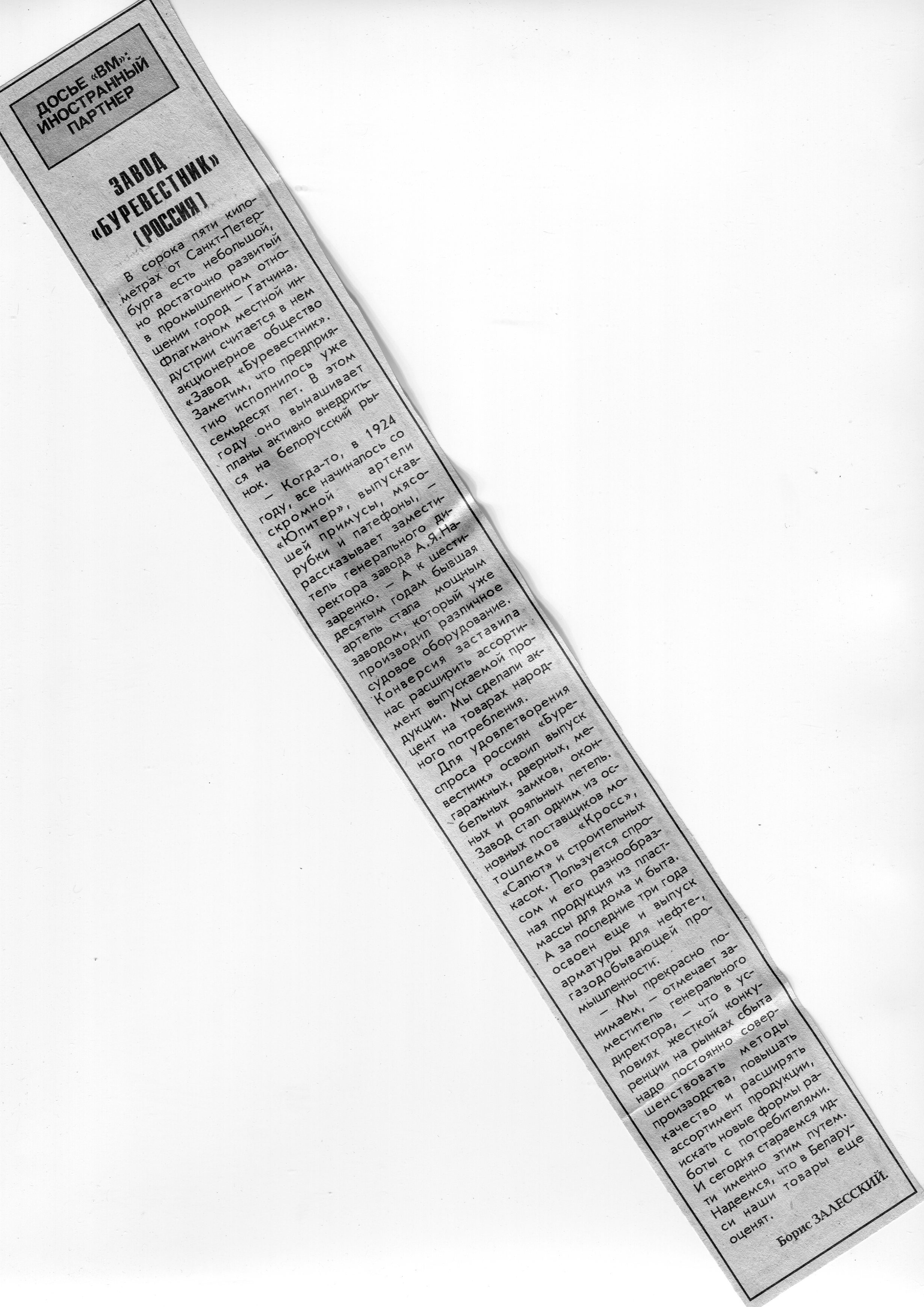 Залесский, Б. Завод "Буревестник" (Россия) / Б. Залесский // Вечерний Минск. - 1995. - 11 авг.
