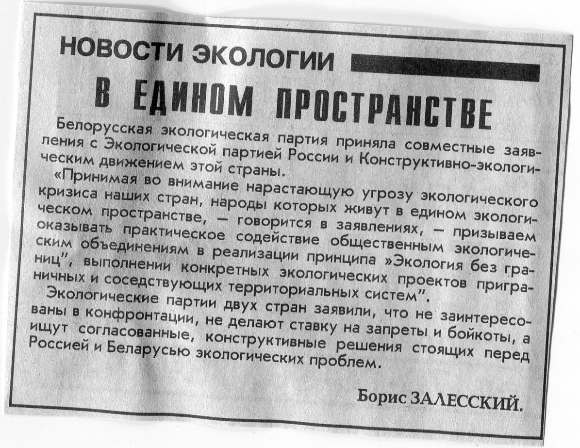 Залесский, Б. В едином пространстве / Б. Залесский // Вечерний Минск. - 1995. - 18 мая.