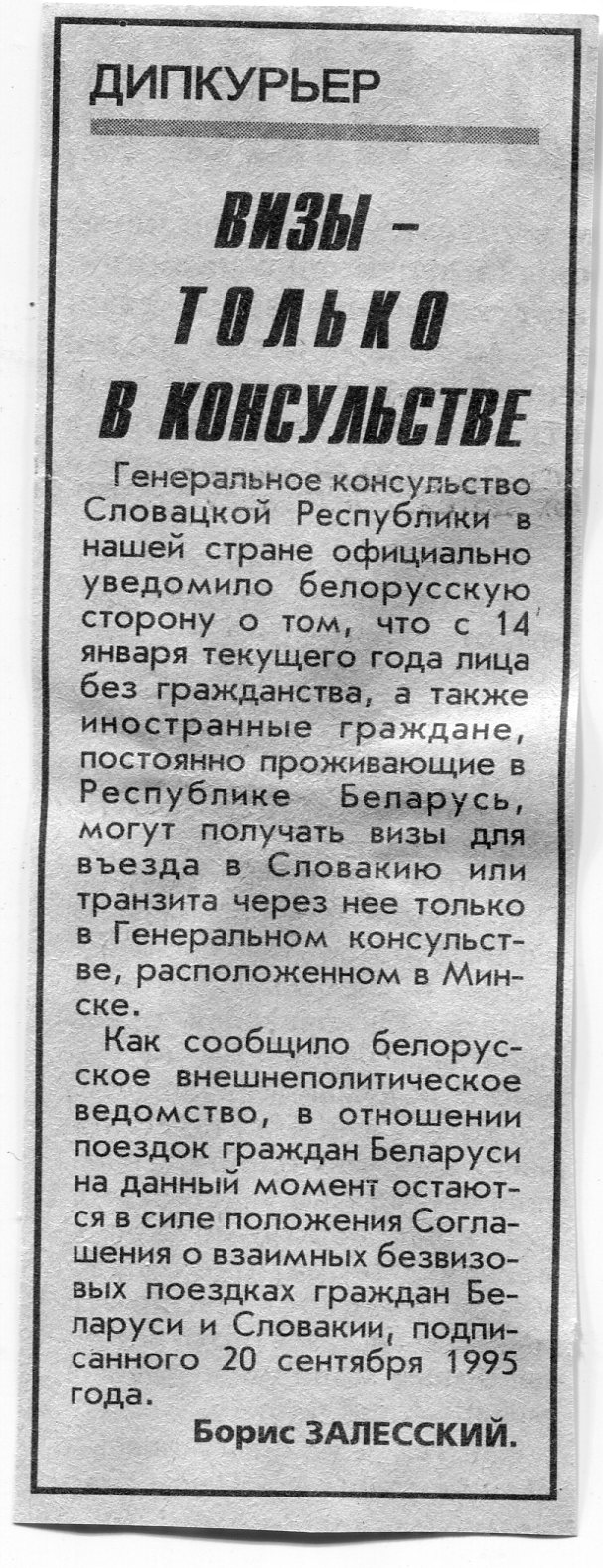 Залесский, Б. Визы - только в консульстве / Б. Залесский // Вечерний Минск. - 2000. - 25 янв.
