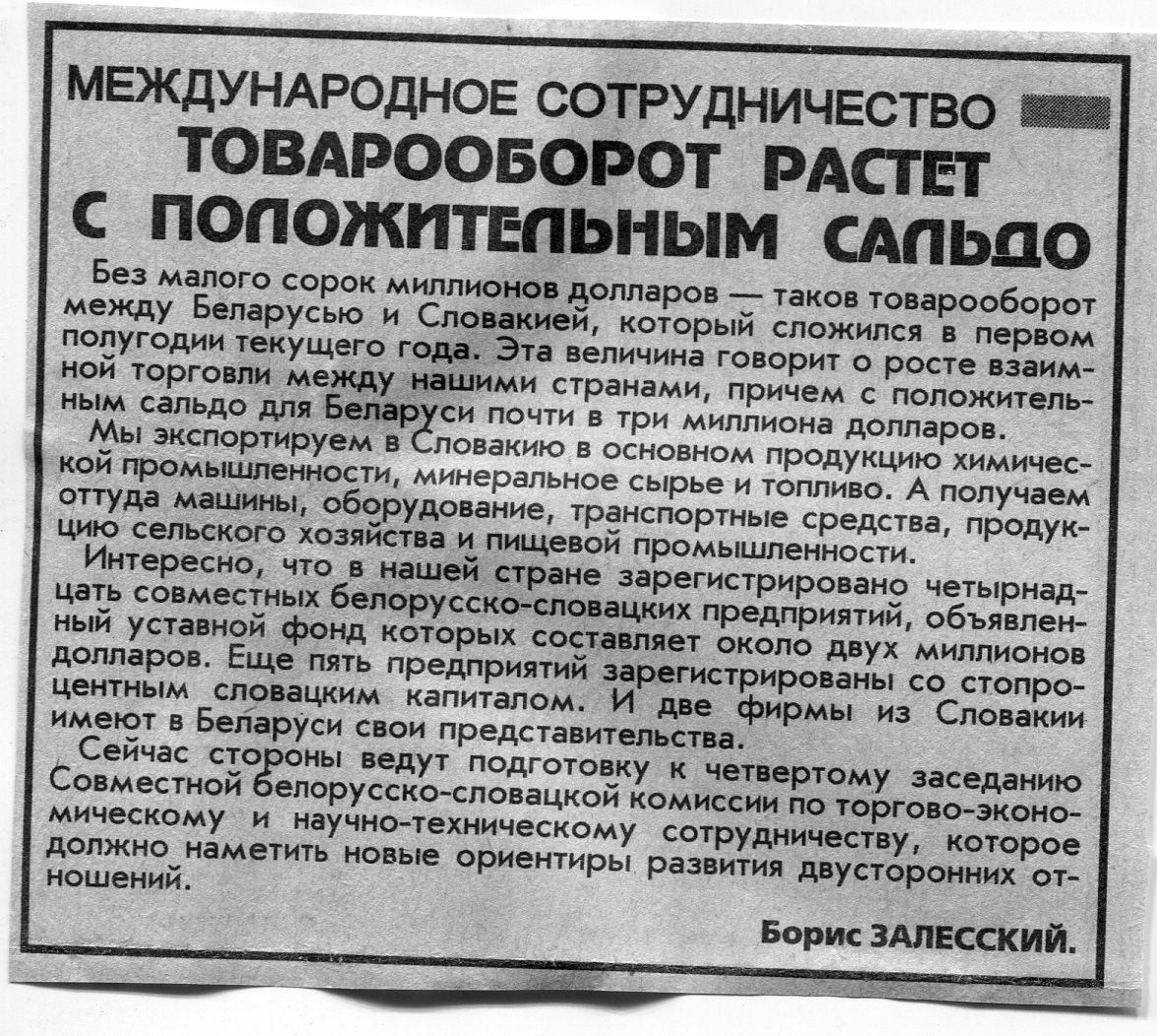 Залесский, Б. Товарооборот растет с положительным сальдо / Б. Залесский // Вечерний Минск. - 1998. - 15 окт.