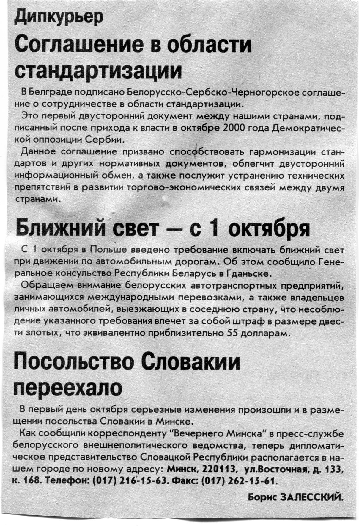 Залесский, Б. Посольство Словакии переехало / Б. Залесский // Вечерний Минск. - 2003. - 8 окт.