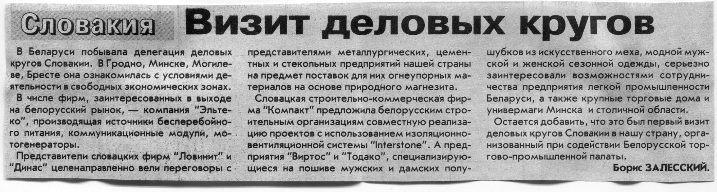 Залесский, Б. Визит деловых кругов / Б. Залесский // Вечерний Минск. - 2003. - 30 июн.