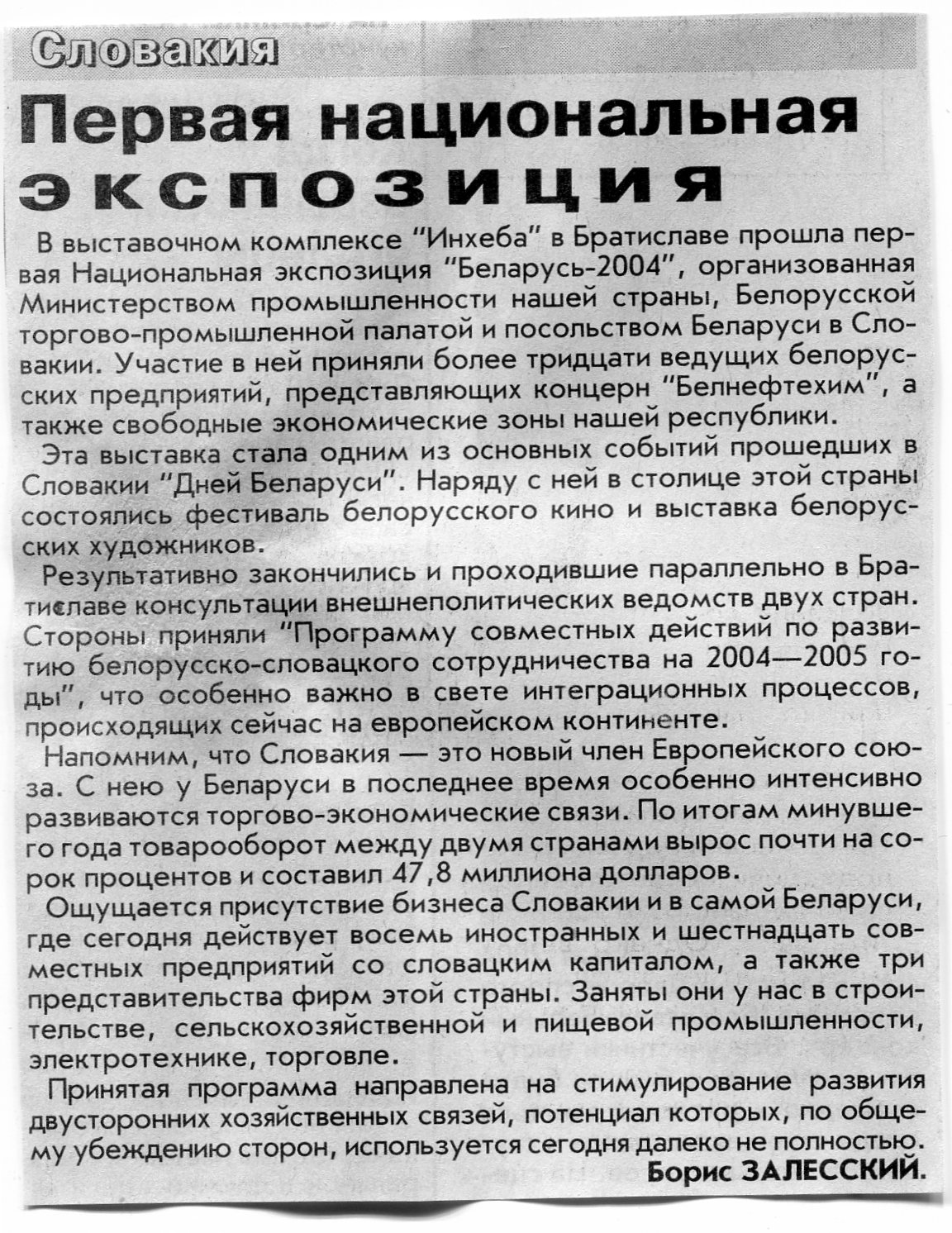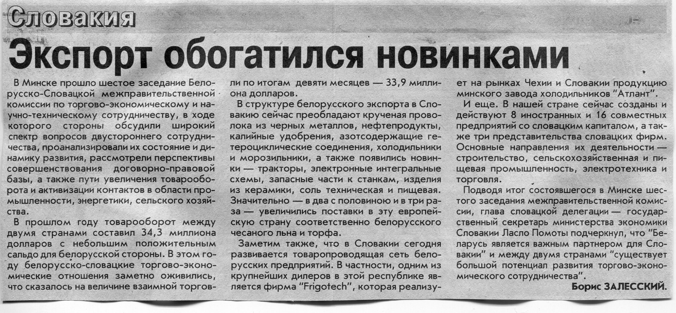 Залесский, Б. Экспорт обогатился новинками / Б. Залесский // Вечерний Минск. - 2003. - 26 нояб.