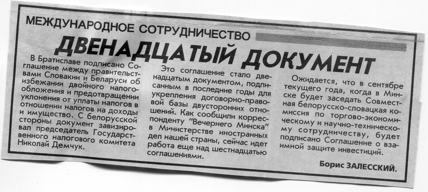 Залесский, Б. Двенадцатый документ / Б. Залесский // Вечерний Минск. - 1999. - 19 июл.