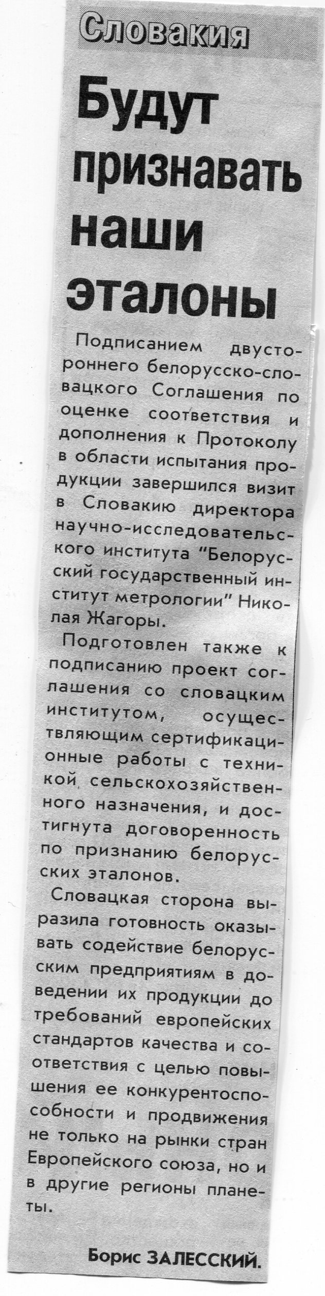 Залесский, Б. Будут признавать наши эталоны / Б. Залесский // Вечерний Минск. - 2004. - 11 мар.