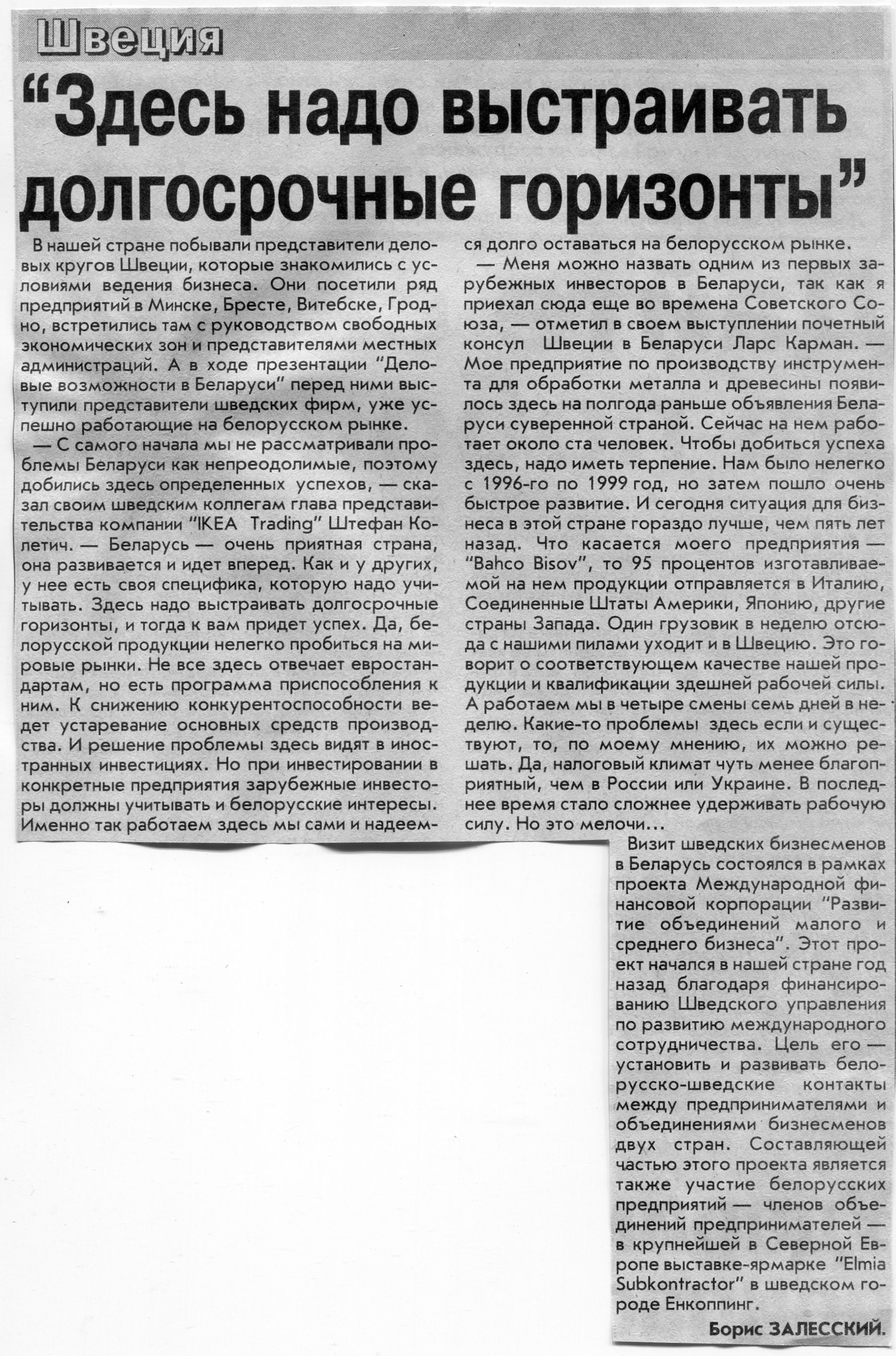 Залесский, Б. "Здесь надо выстраивать долгосрочные горизонты" / Б. Залесский // Вечерний Минск. - 2003. - 16 дек.