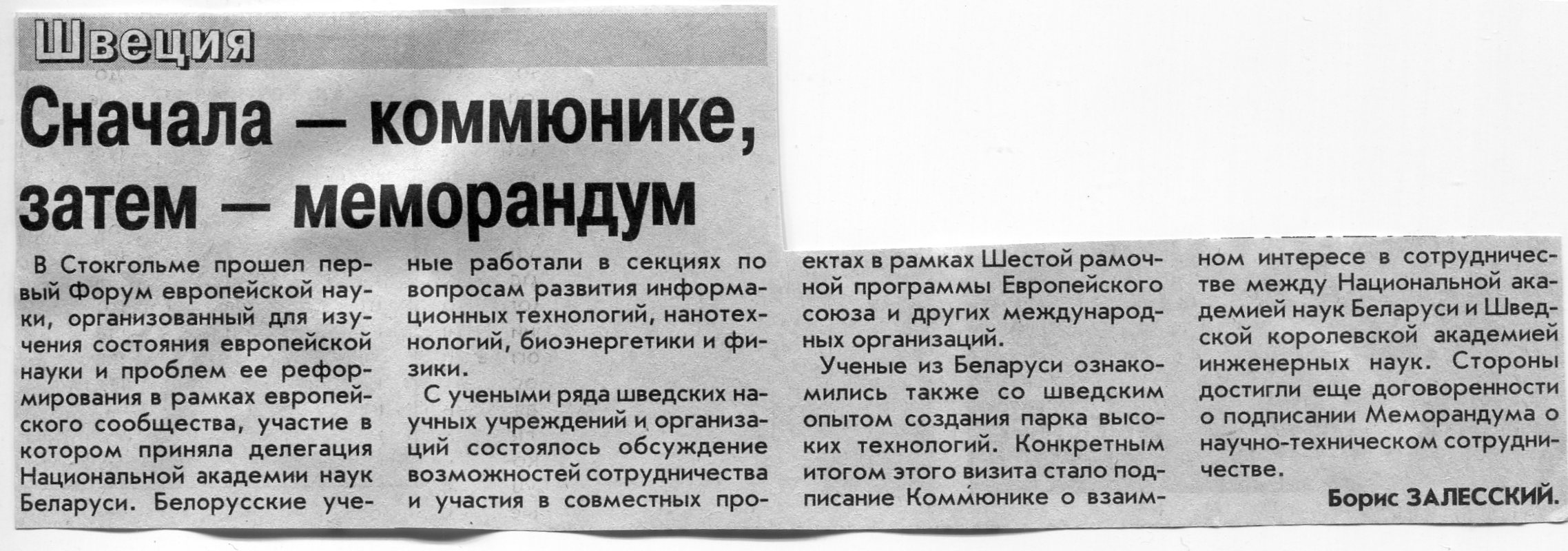 Залесский, Б. Ученые договорились сотрудничать / Б. Залесский // Вечерний Минск. - 2004. - 16 нояб.