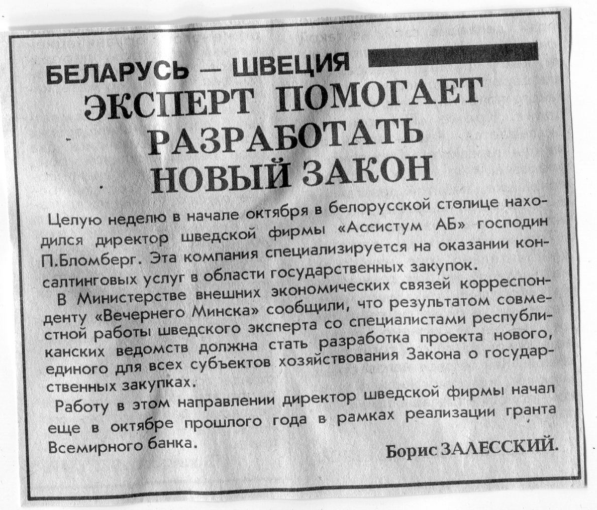 Залесский, Б. Эксперт помогает разработать новый закон / Б. Залесский // Вечерний Минск. - 1995. -16 окт.