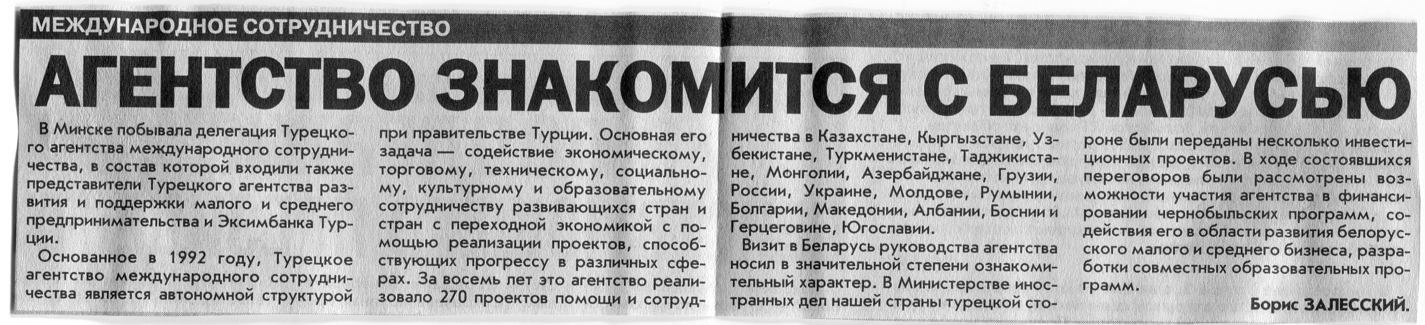 Залесский, Б. Агентство знакомится с Беларусью / Б. Залесский // Вечерний Минск. - 2001 - 28 авг.