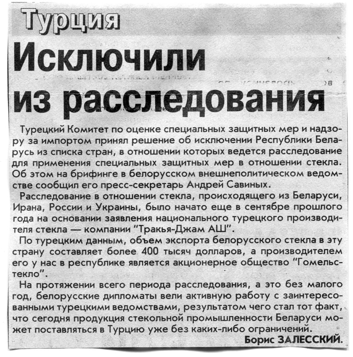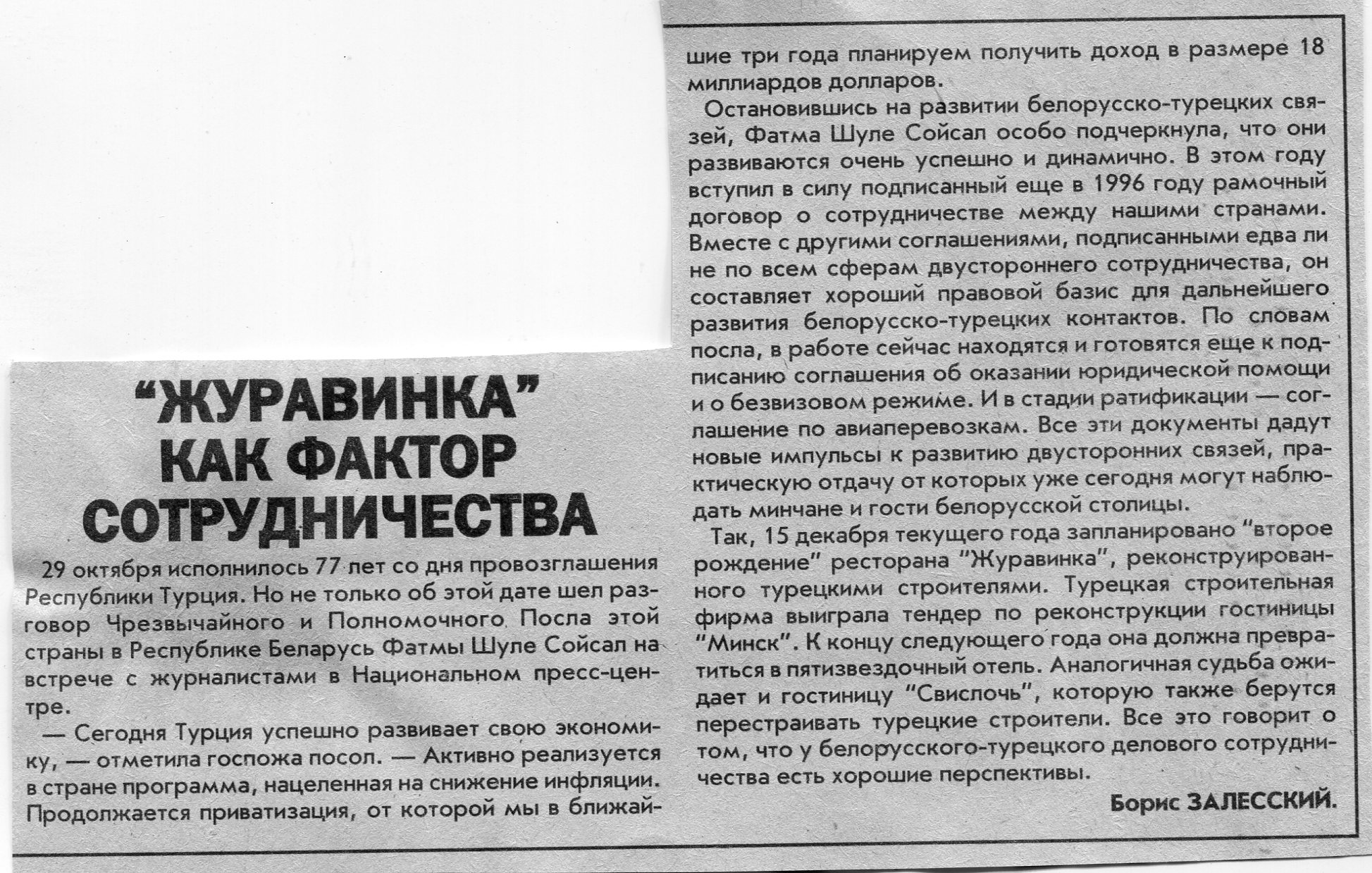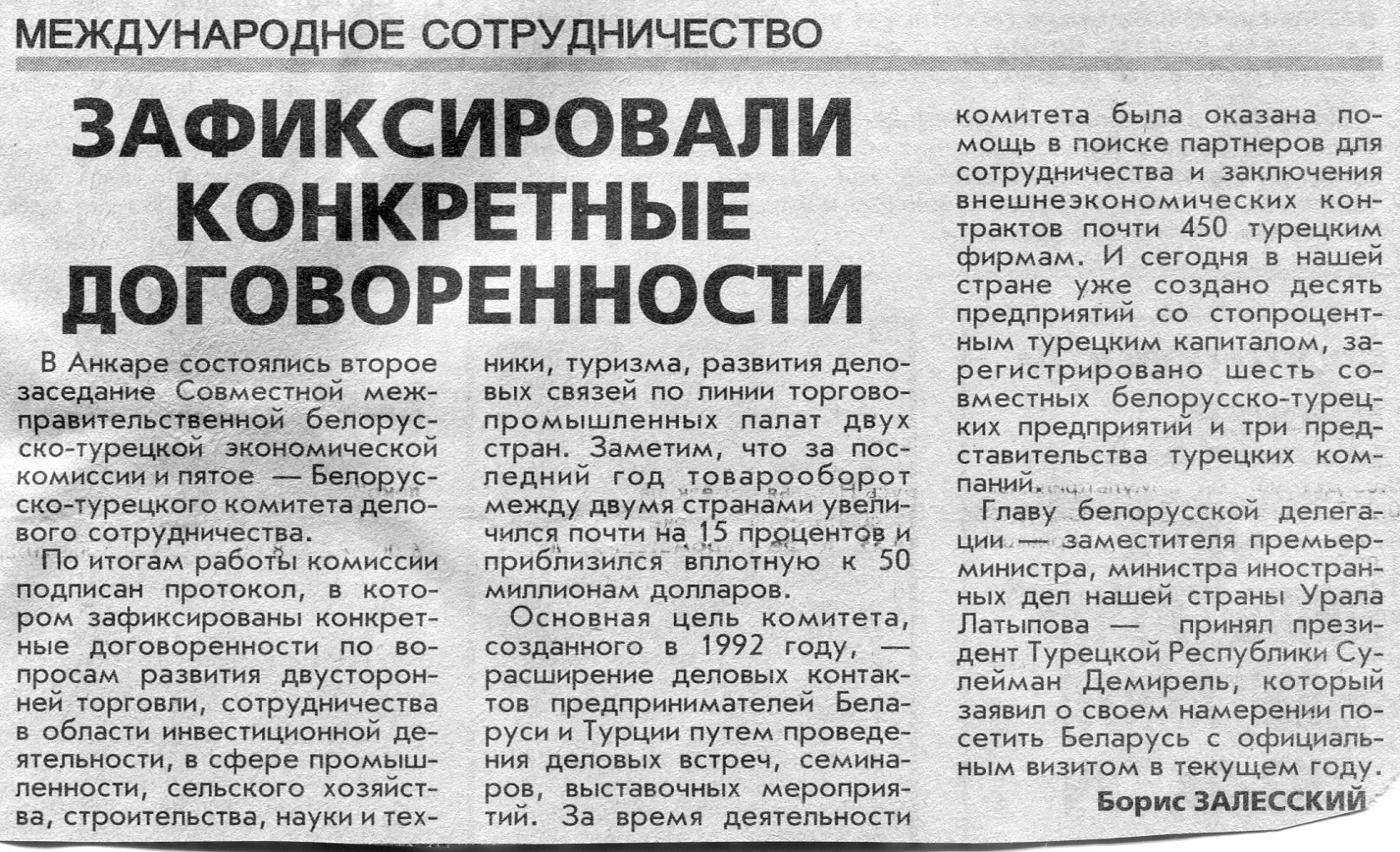 Залесский, Б. Наши дилеры - в Турции / Б. Залесский // Вечерний Минск. - 2001 - 28 мар.