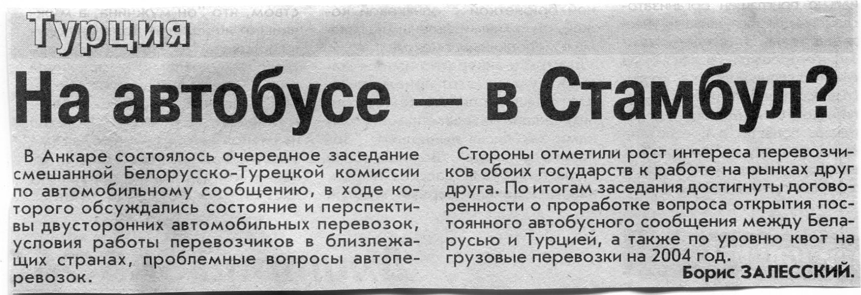 Залесский, Б. На автобусе - в Стамбул? / Б. Залесский // Вечерний Минск. - 2003. - 21 нояб.