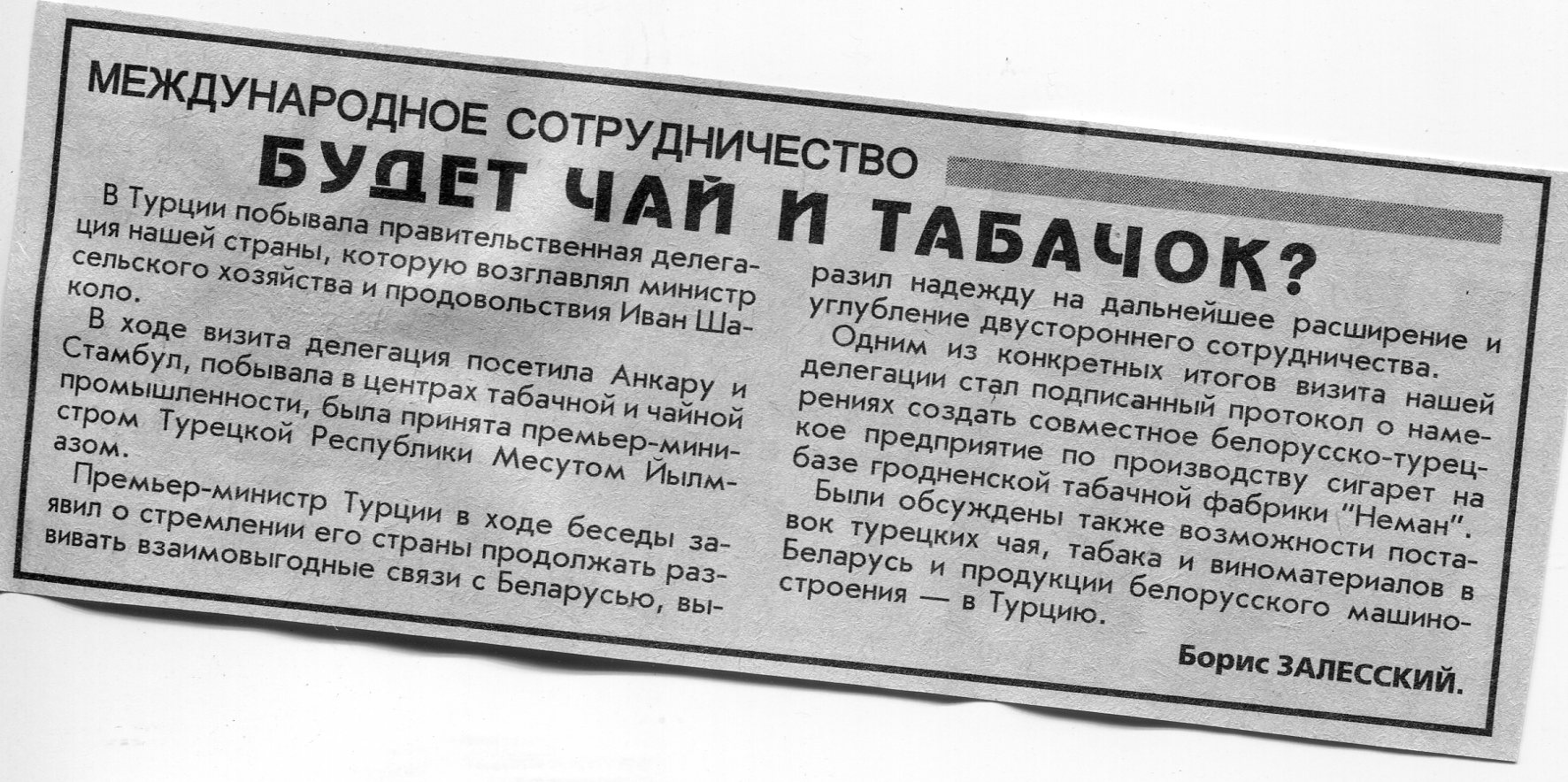 Залесский, Б. Будет чай и табачок? / Б. Залесский // Вечерний Минск. - 1998. - 30 июн.
