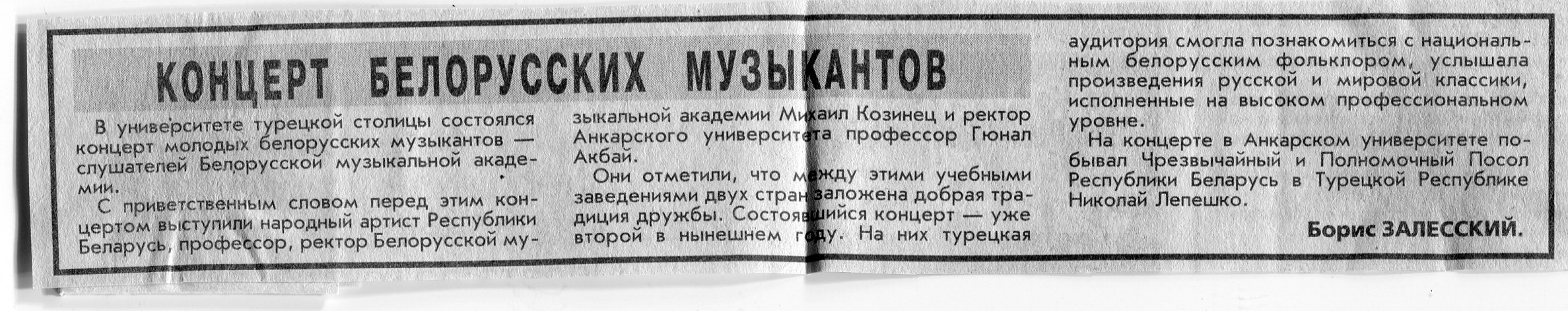 Залесский, Б. Концерт белорусских музыкантов / Б. Залесский // Вечерний Минск. - 1999 - 15 нояб.