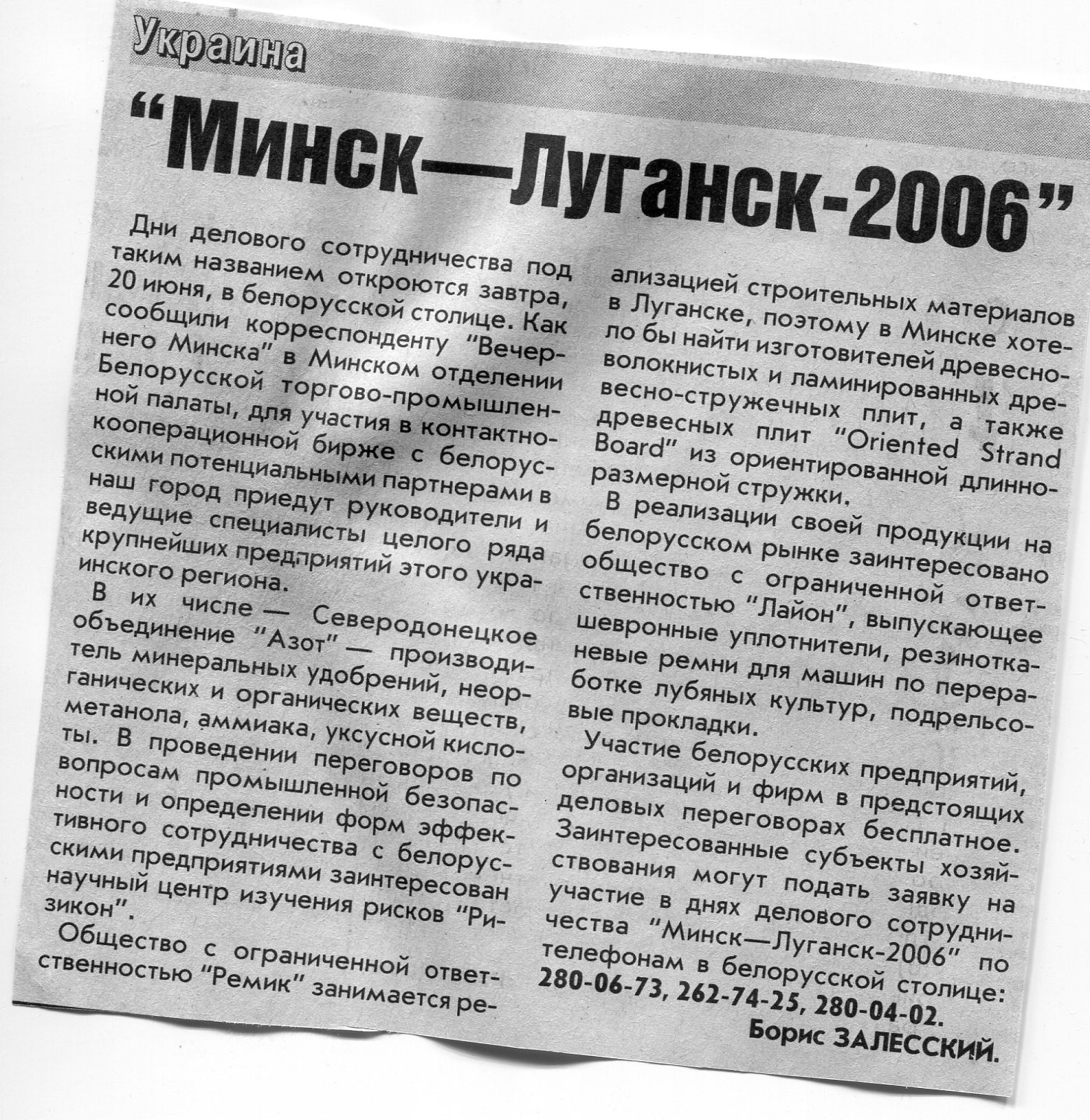Залесский, Б. "Минск - Луганск - 2006" / Б. Залесский / Вечерний Минск. - 2006. - 19 июн.