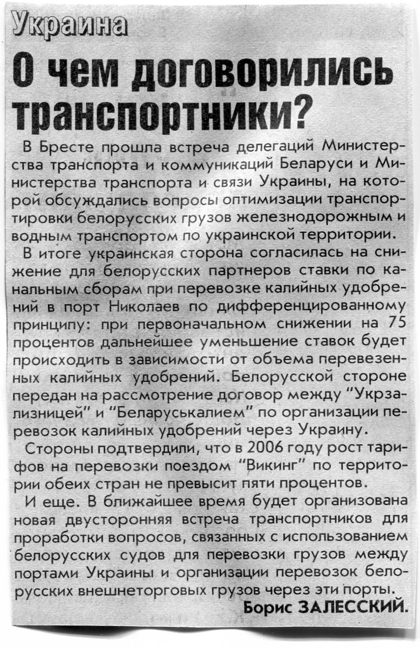 Залесский, Б. О чем договорились транспортники? / Б. Залесский / Вечерний Минск. - 2006. - 16 янв.