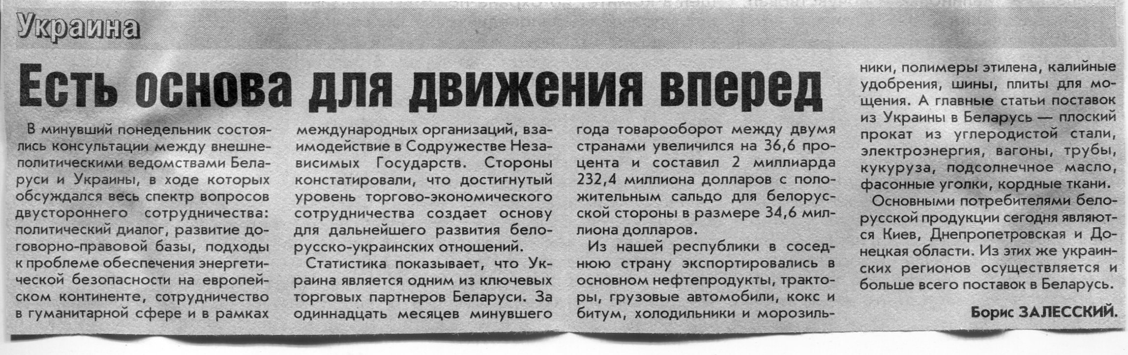 Залесский, Б. Есть основа для движения вперед / Б. Залесский / Вечерний Минск. - 2007. - 1 февр.