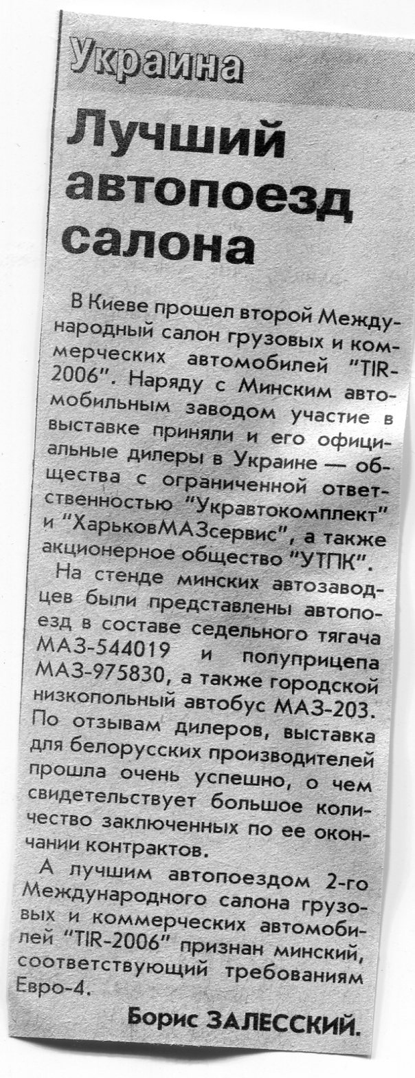 Залесский, Б. Лучший автопоезд салона / Б. Залесский / Вечерний Минск. - 2006. - 3 нояб.
