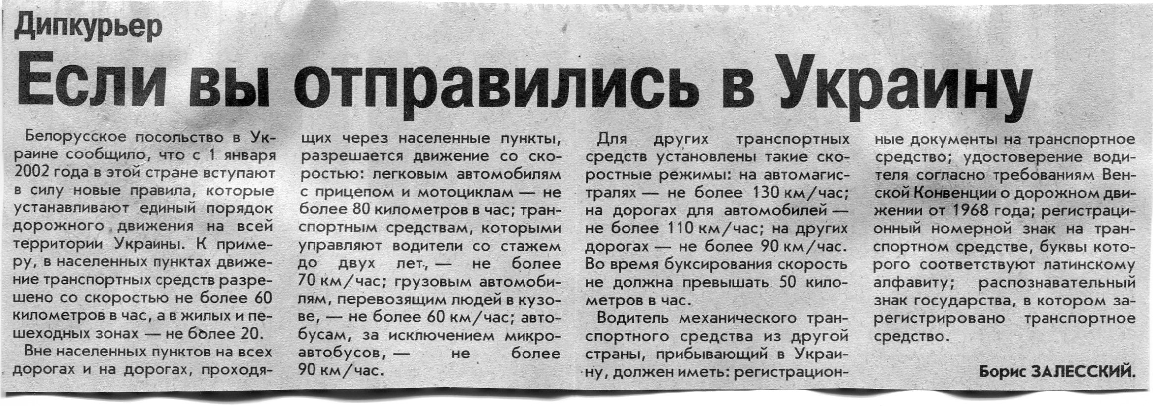 Залесский, Б. Если вы отправились в Украину / Б. Залесский / Вечерний Минск. - 2001. - 19 дек.