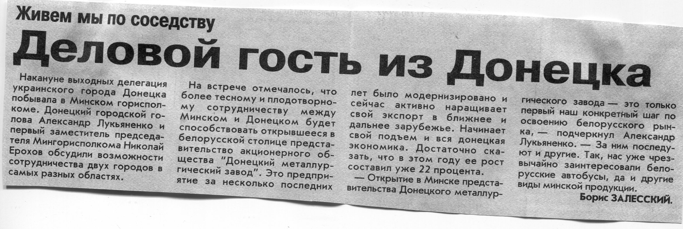 Залесский, Б. Деловой гость из Донецка / Б. Залесский / Вечерний Минск. - 2002. - 23 сент.