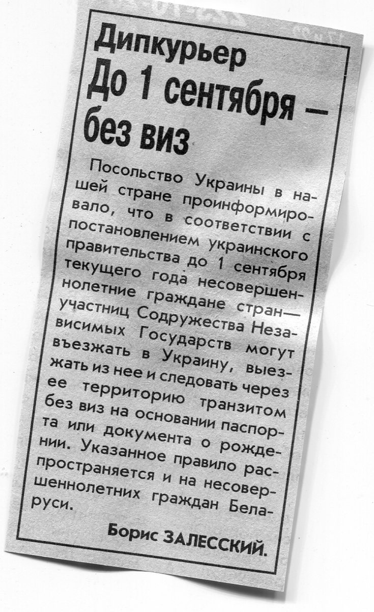 Залесский, Б. До 1 сентября - без виз / Б. Залесский / Вечерний Минск. - 2002. - 12 авг.