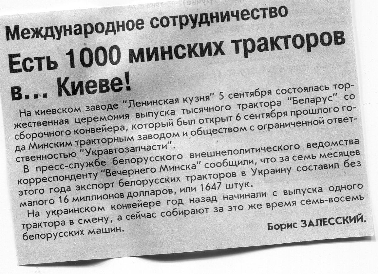 Залесский, Б. Есть 1000 минских тракторов в ... Киеве! / Б. Залесский / Вечерний Минск. - 2003. - 10 сент.