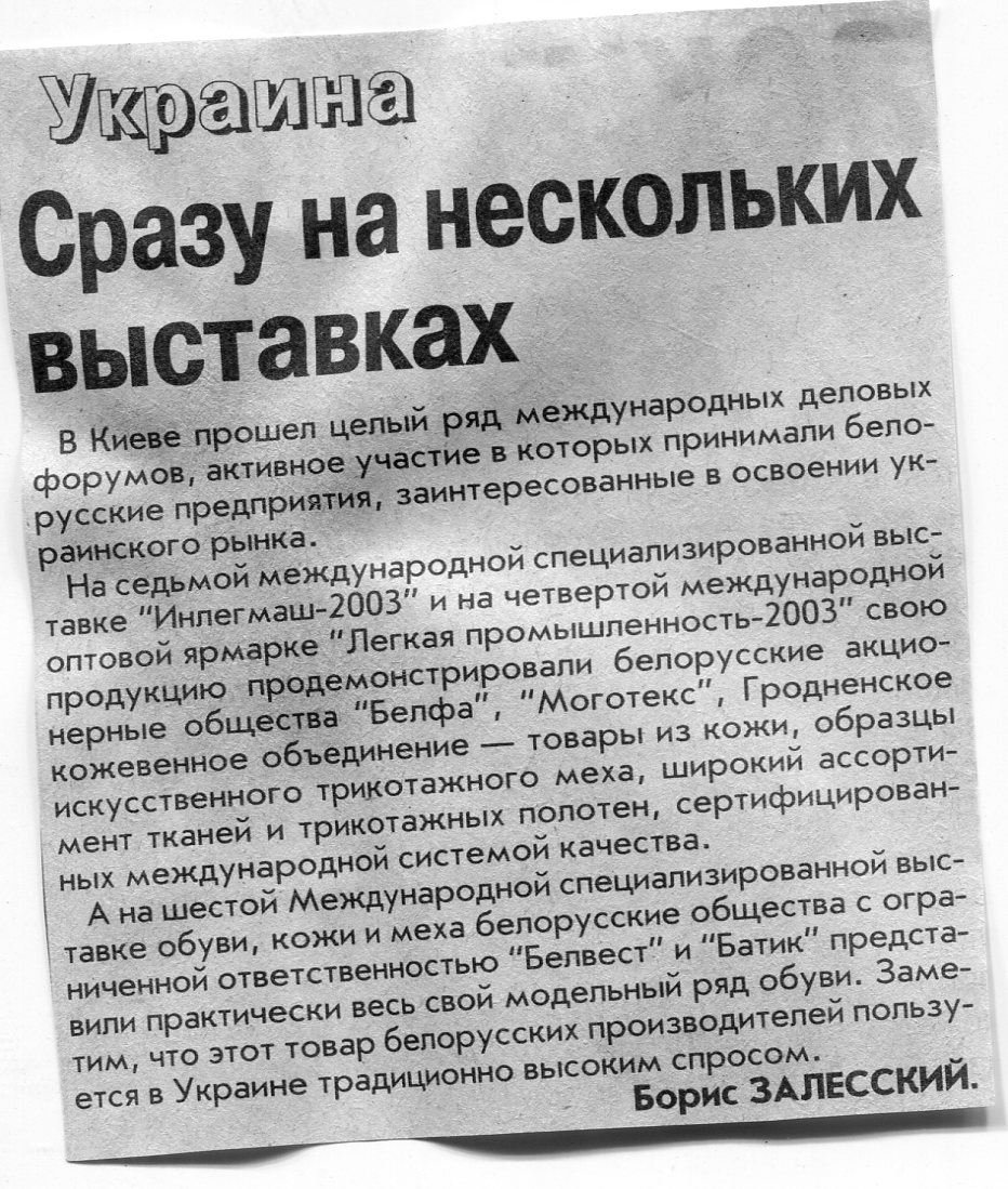 Залесский, Б. Сразу на нескольких выставках / Б. Залесский / Вечерний Минск. - 2003. - 15 сент.