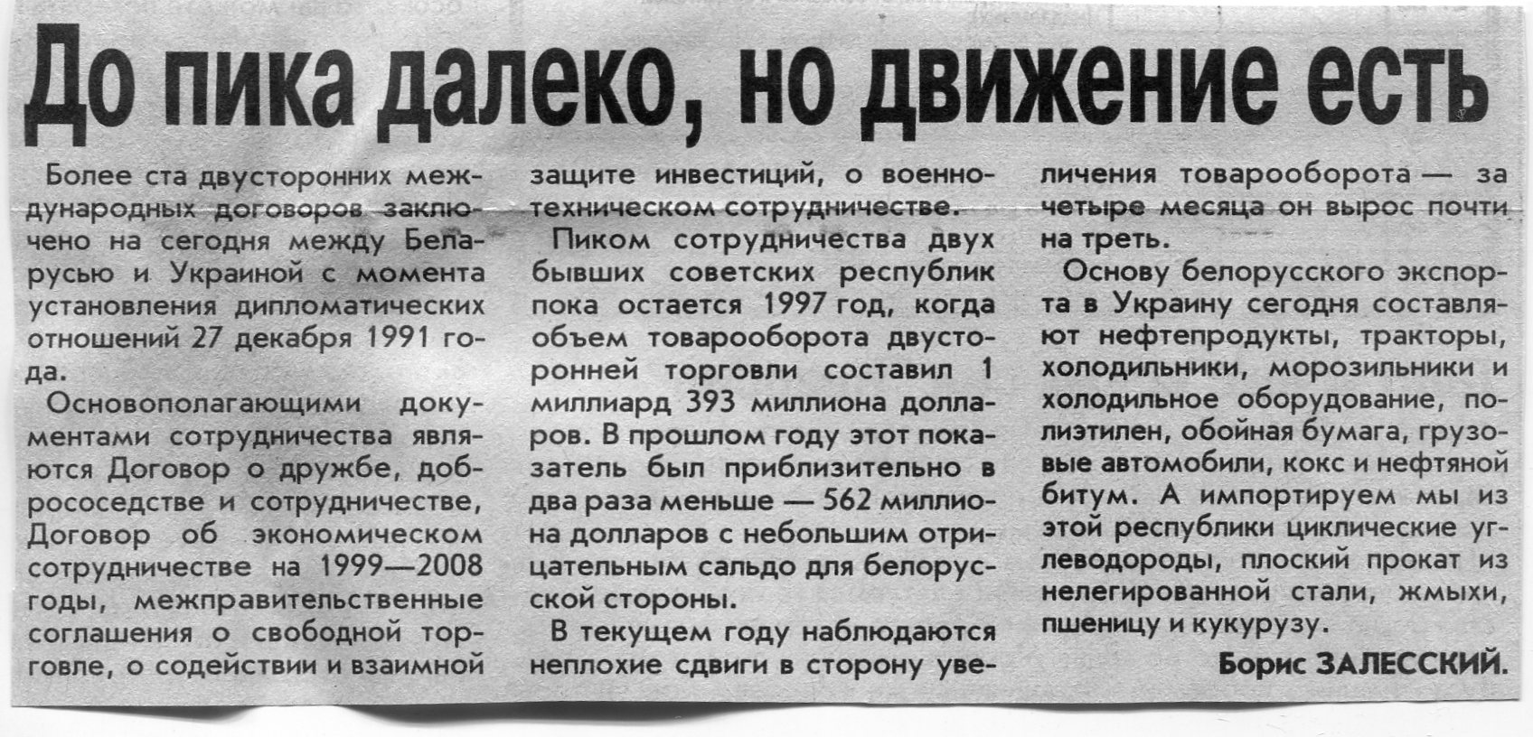 Залесский, Б. До пика далеко, но движение есть / Б. Залесский / Вечерний Минск. - 2003. - 24 июн.