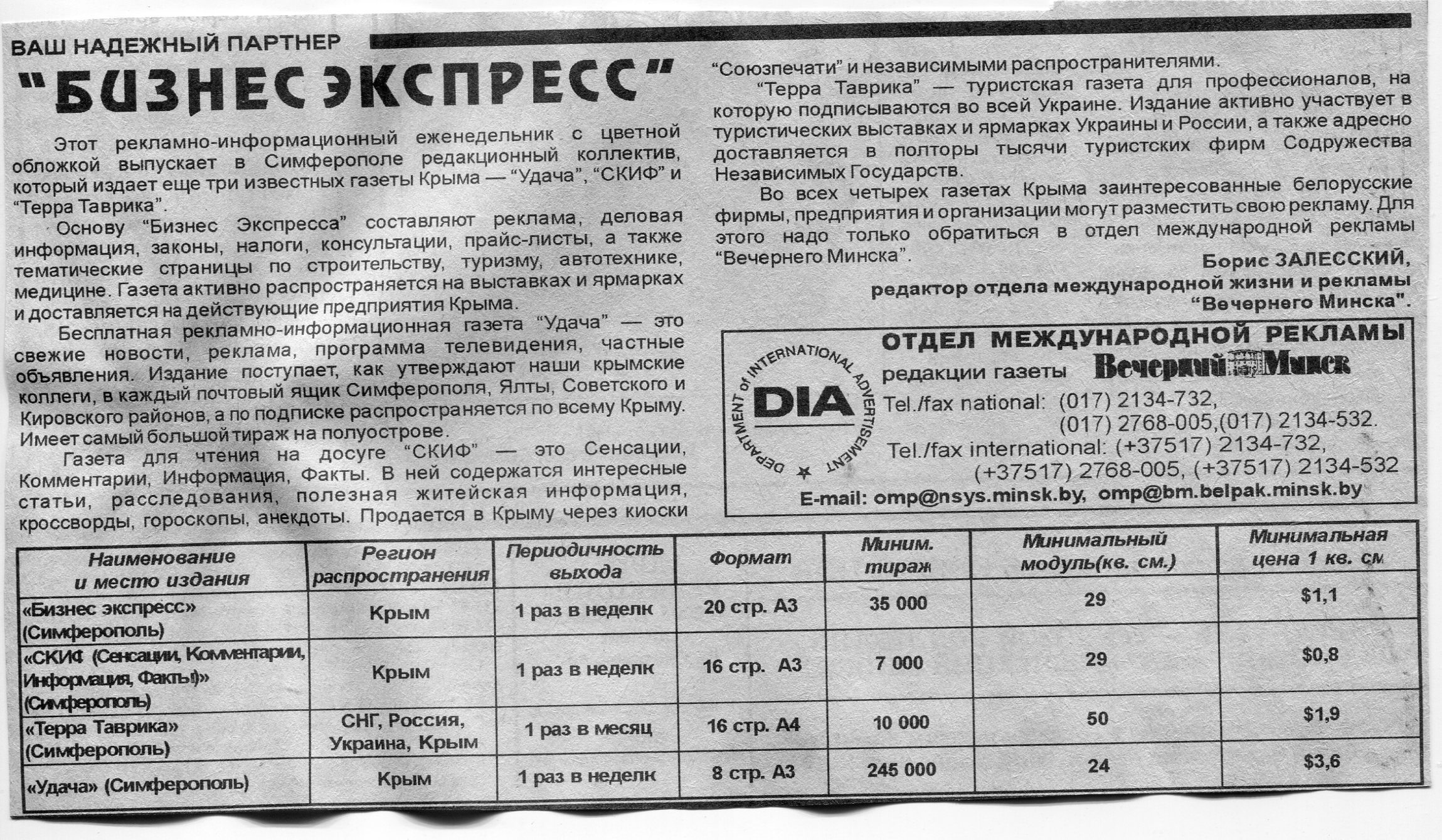 Залесский, Б. "Бизнес экспресс" / Б. Залесский // Вечерний Минск. – 1998. – 8 мая.