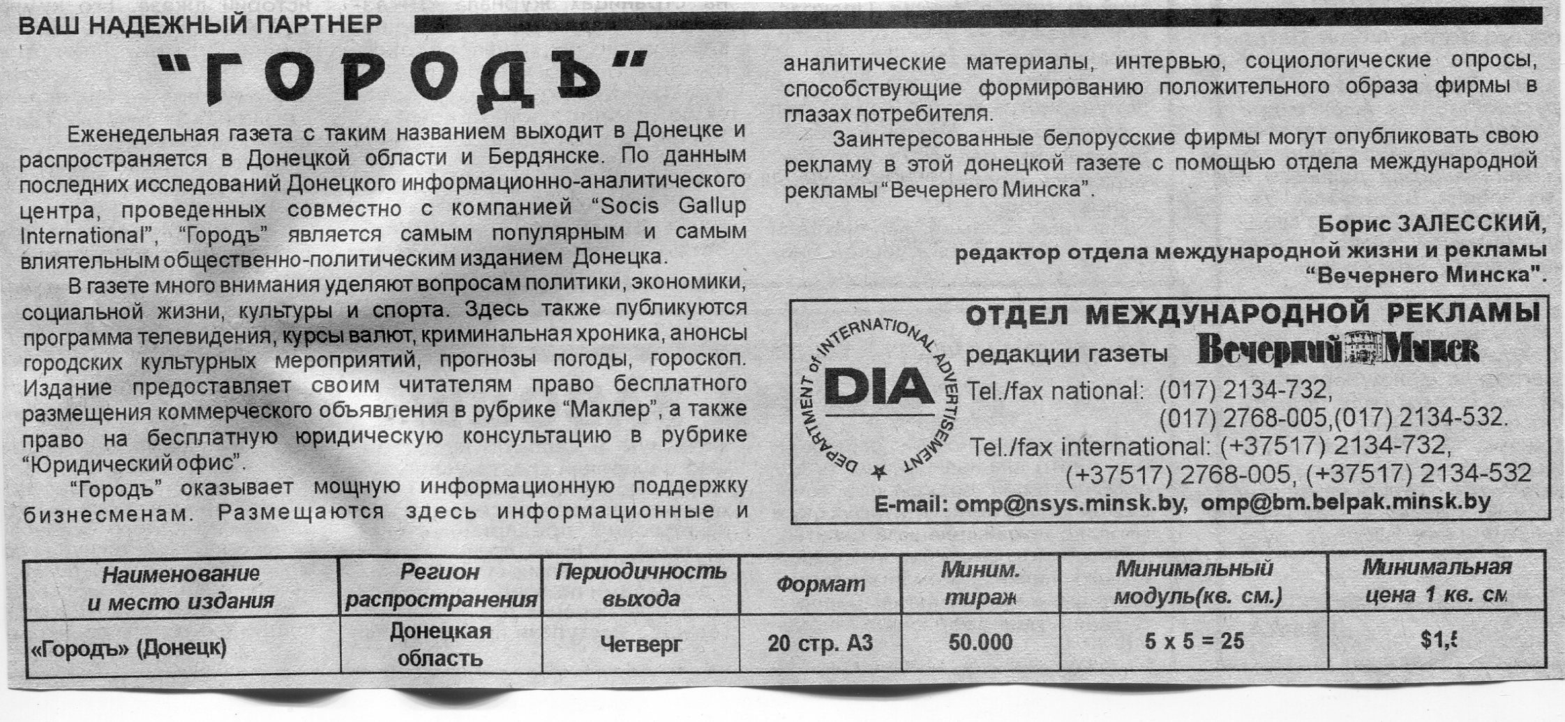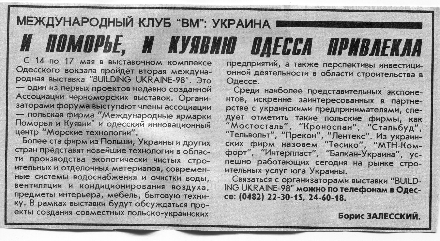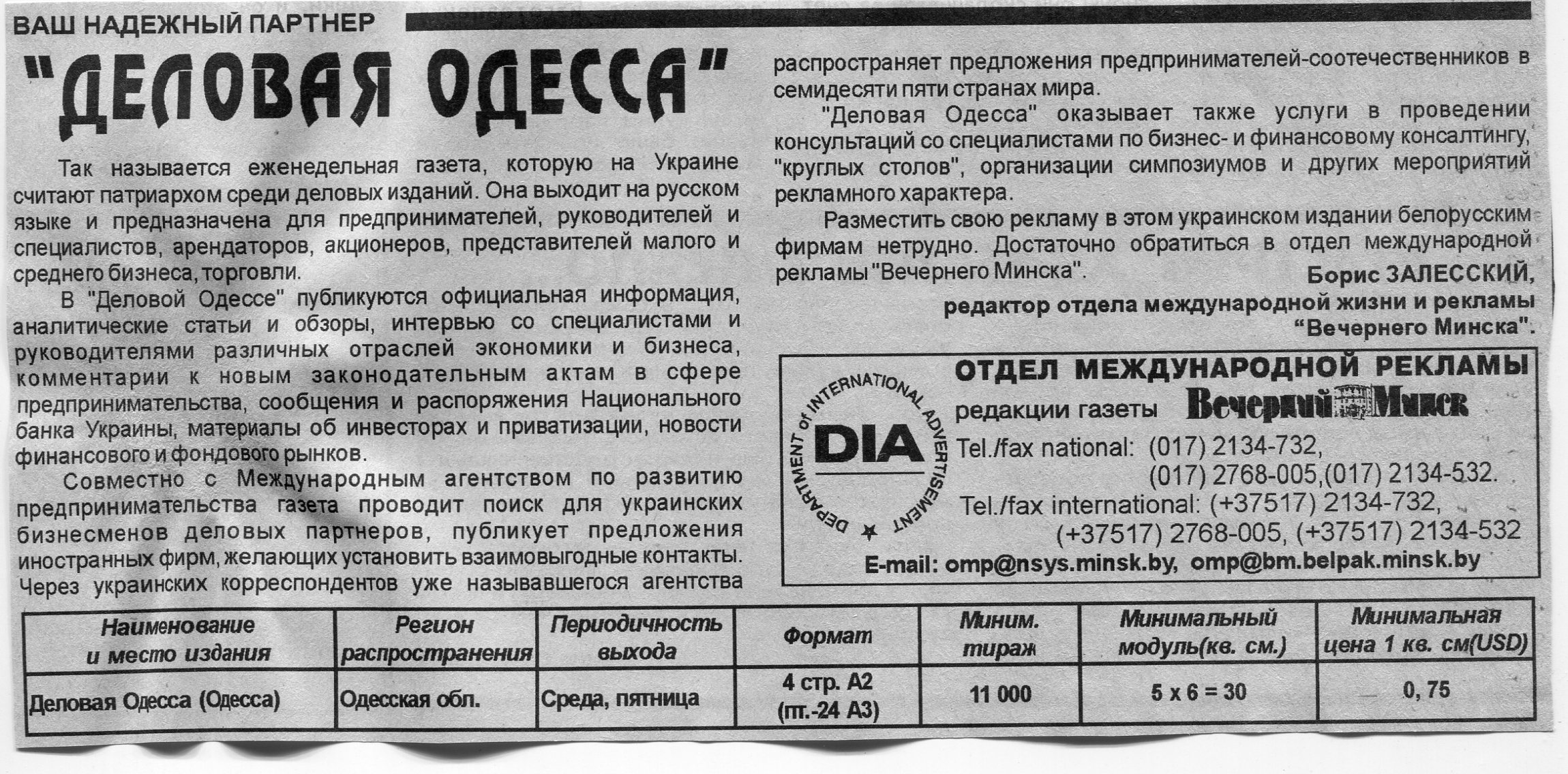 Залесский, Б. "Деловая Одесса" / Б. Залесский // Вечерний Минск. – 1998. – 23 апр.