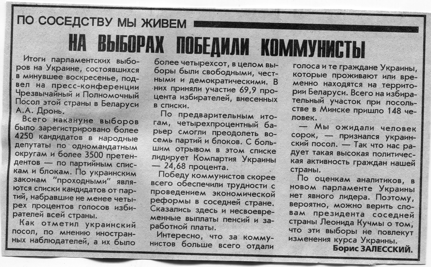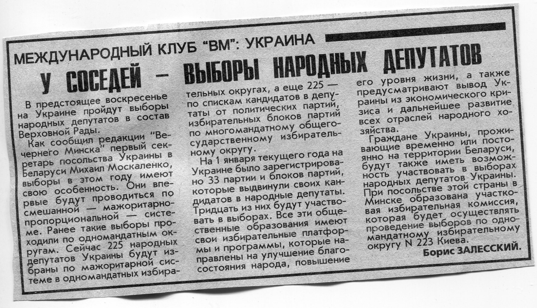 Залесский, Б. У соседей - выборы народных депутатов / Б. Залесский // Вечерний Минск. - 1998. - 27 мар.