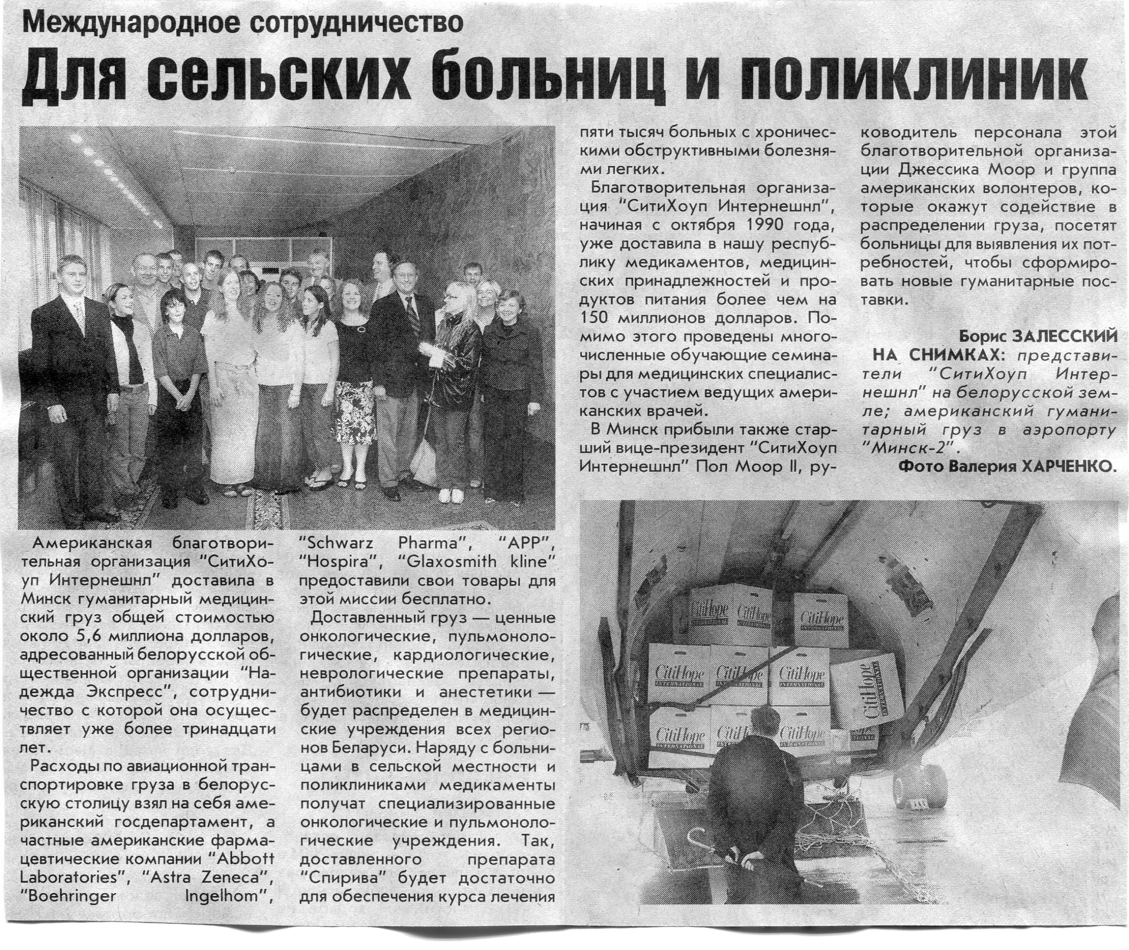 Залесский, Б. Еще одна гуманитарная акция / Б. Залесский // Вечерний Минск. - 2003. -15 авг.