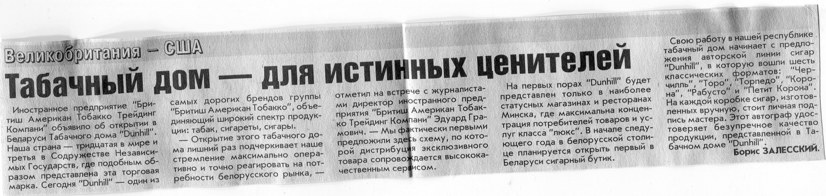 Залесский, Б. Табачный дом - для истинных ценителей / Б. Залесский // Вечерний Минск. - 2006. - 21 авг.