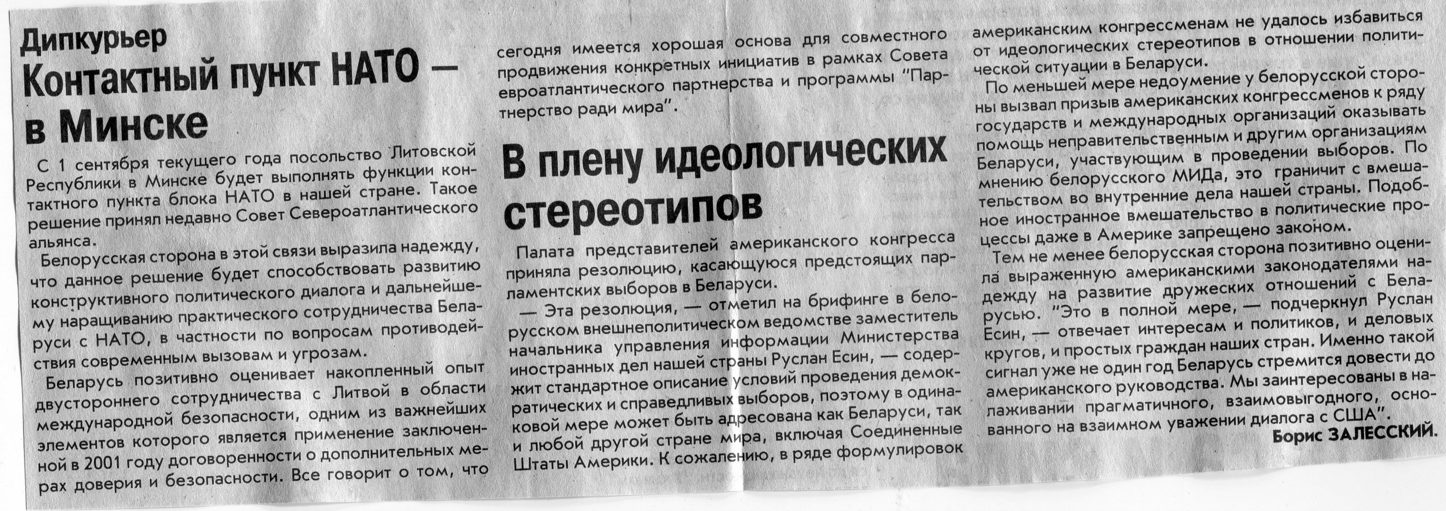 Залесский, Б. В плену идеологических стереотипов / Б. Залесский // Вечерний Минск. - 2004. - 5 авг.