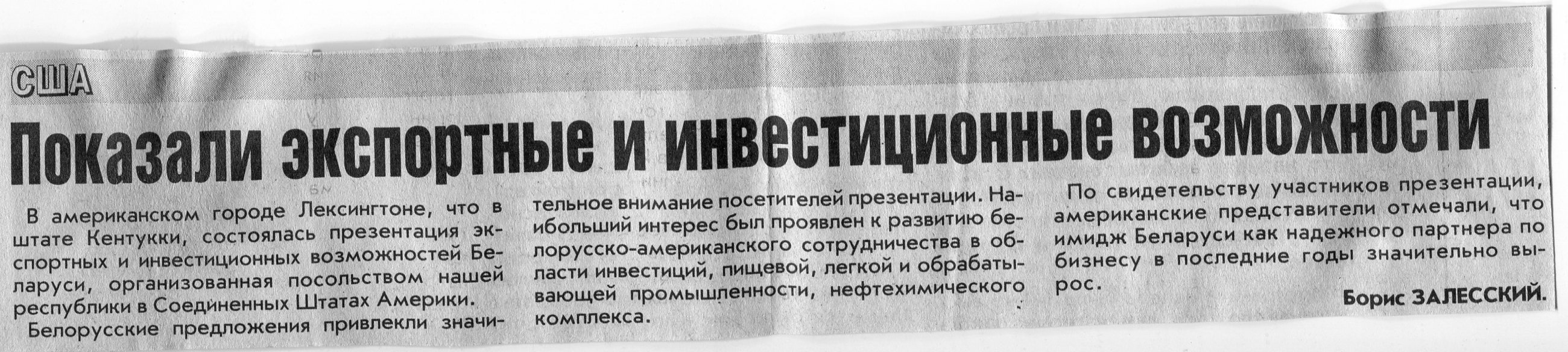 Залесский, Б. Показали экспортные и инвестиционные возможности / Б. Залесский // Вечерний Минск. - 2006. - 17 июл.