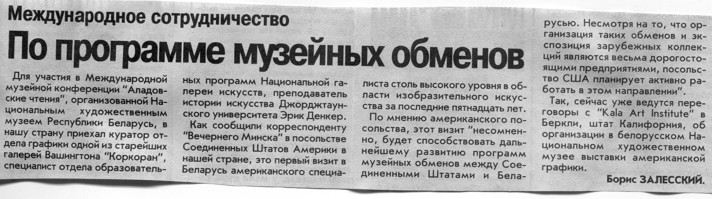 Залесский, Б. По программе музейных обменов / Б. Залесский // Вечерний Минск. - 2002. - 28 мая.