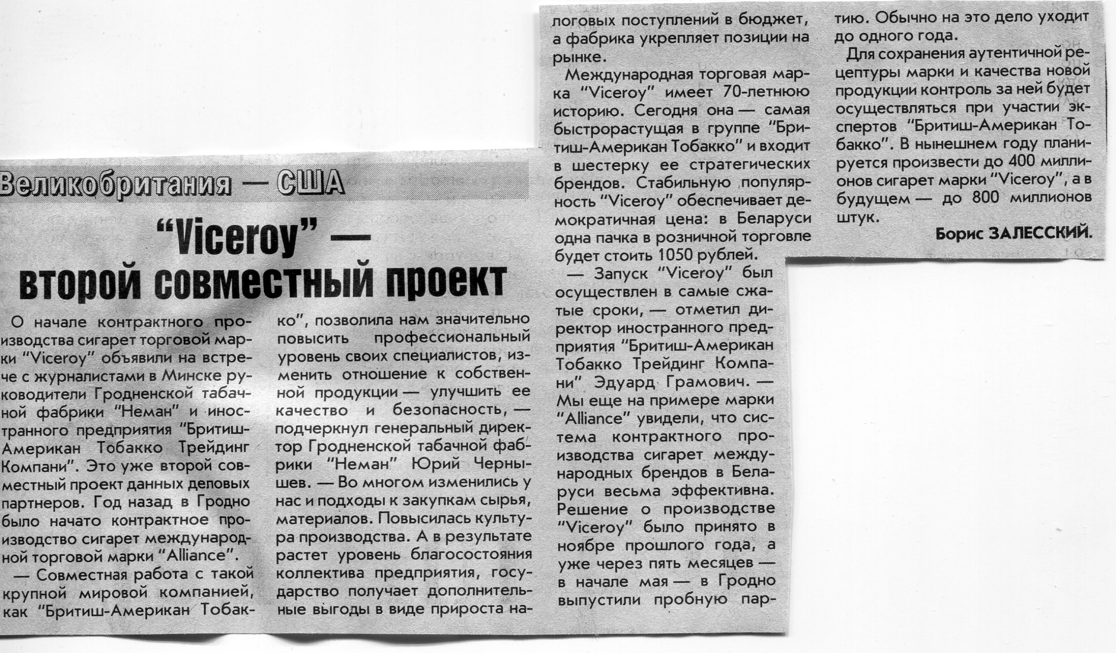 Залесский, Б. "Viceroy" - второй совместный проект / Б. Залесский // Вечерний Минск. - 2006. - 19 июн.