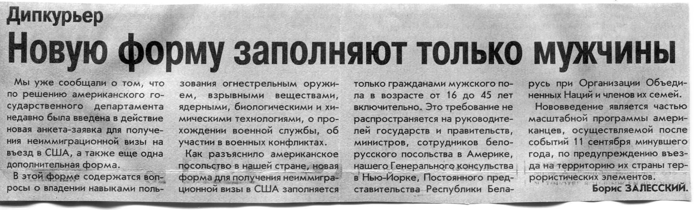Залесский, Б. Новую форму заполняют только мужчины / Б. Залесский // Вечерний Минск. - 2002. - 13 мар.