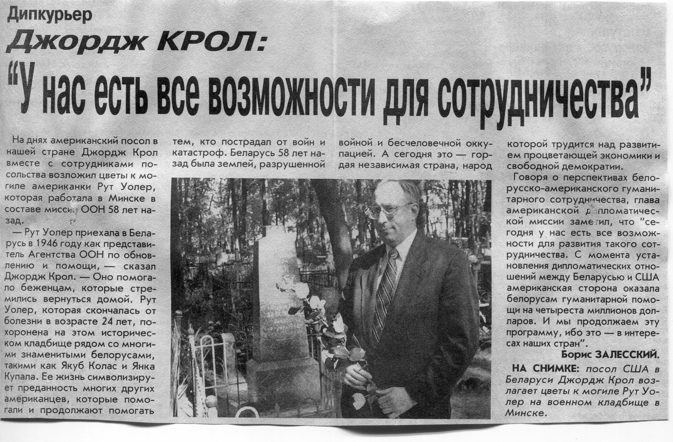 Залесский, Б. Джордж Крол: "У нас есть все возможности для сотрудничества" / Б. Залесский // Вечерний Минск. - 2004. - 6 авг.