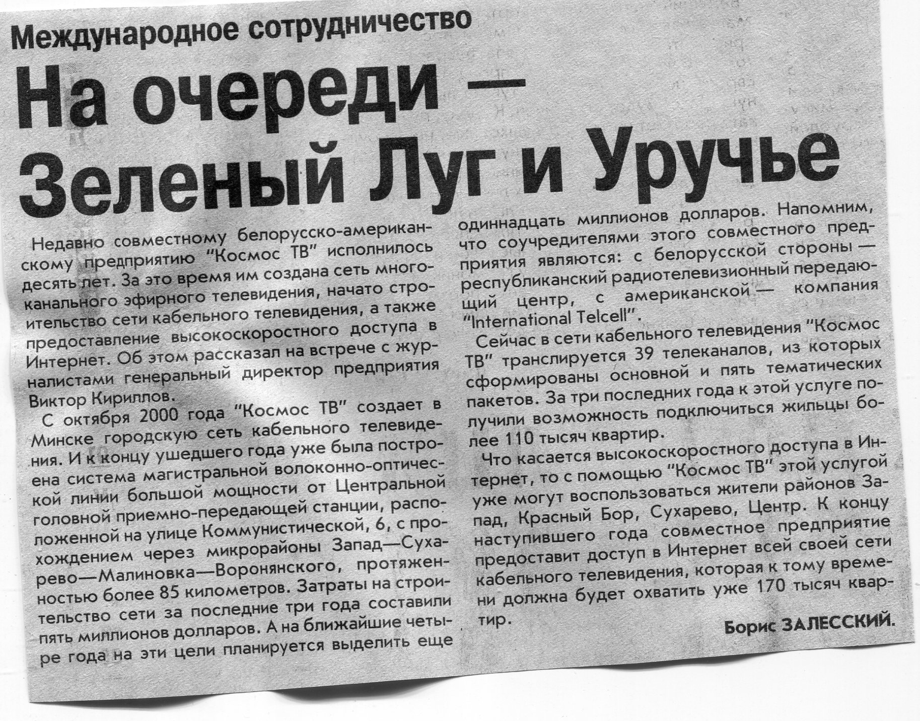Залесский, Б. На очереди - Зеленый Луг и Уручье / Б. Залесский // Вечерний Минск. – 2004. – 12 янв.