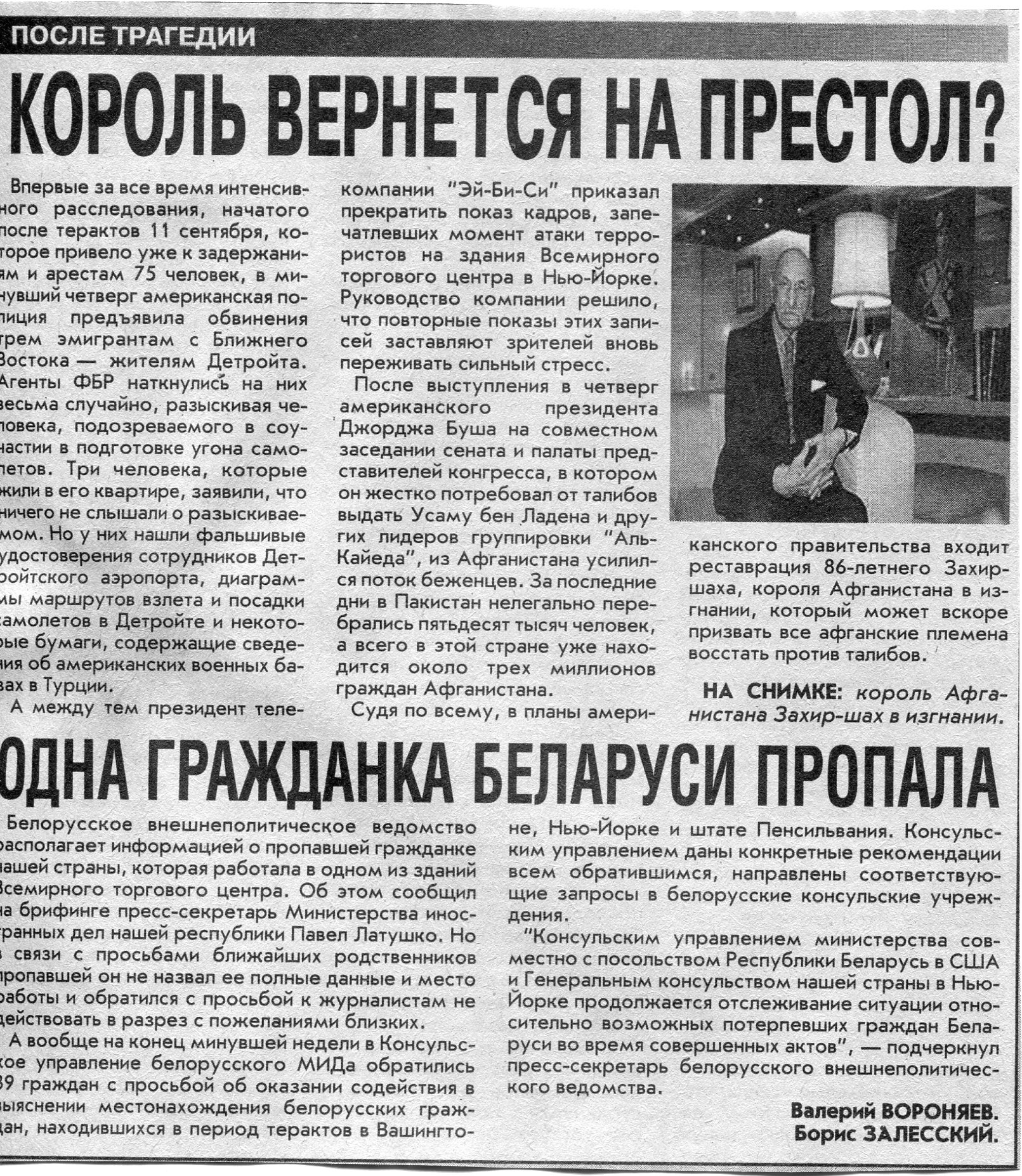 Залесский, Б. После трагедии / Б. Залесский, В. Вороняев // Вечерний Минск. - 2001. - 4 окт.