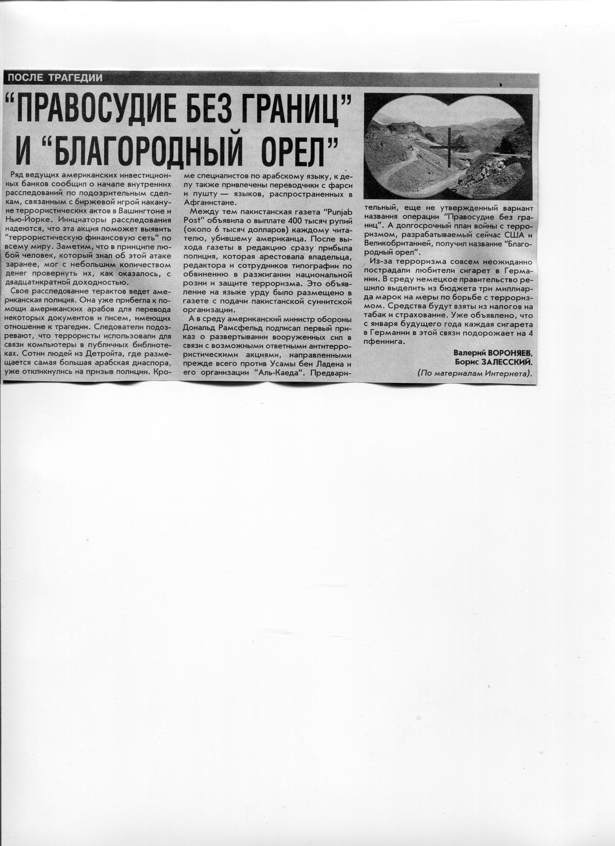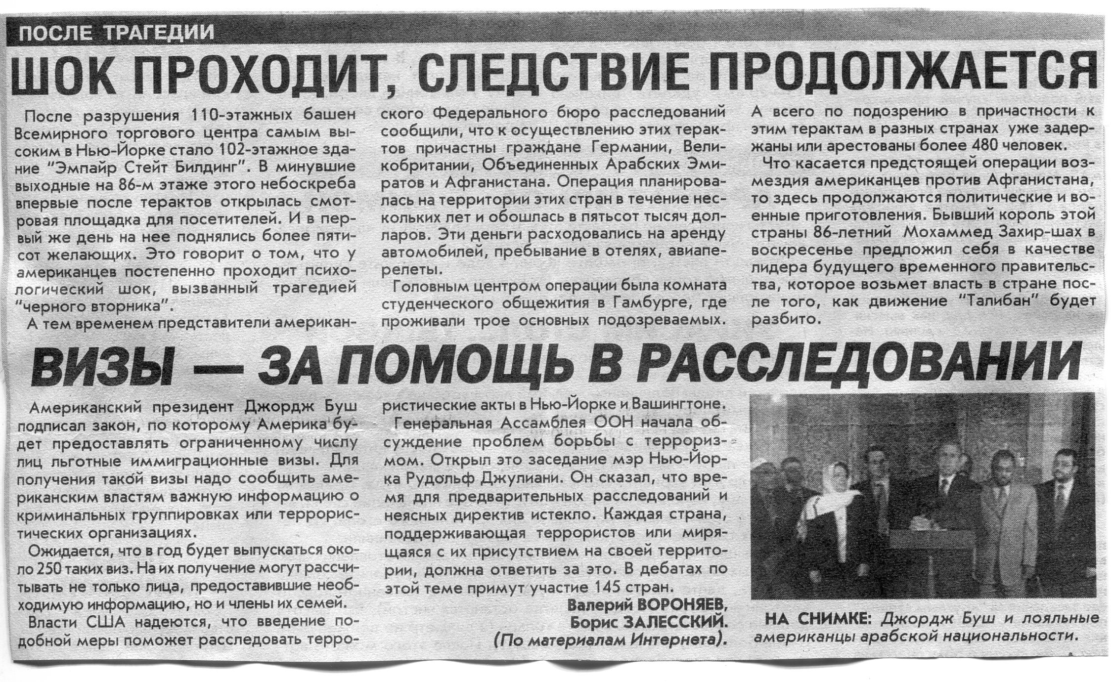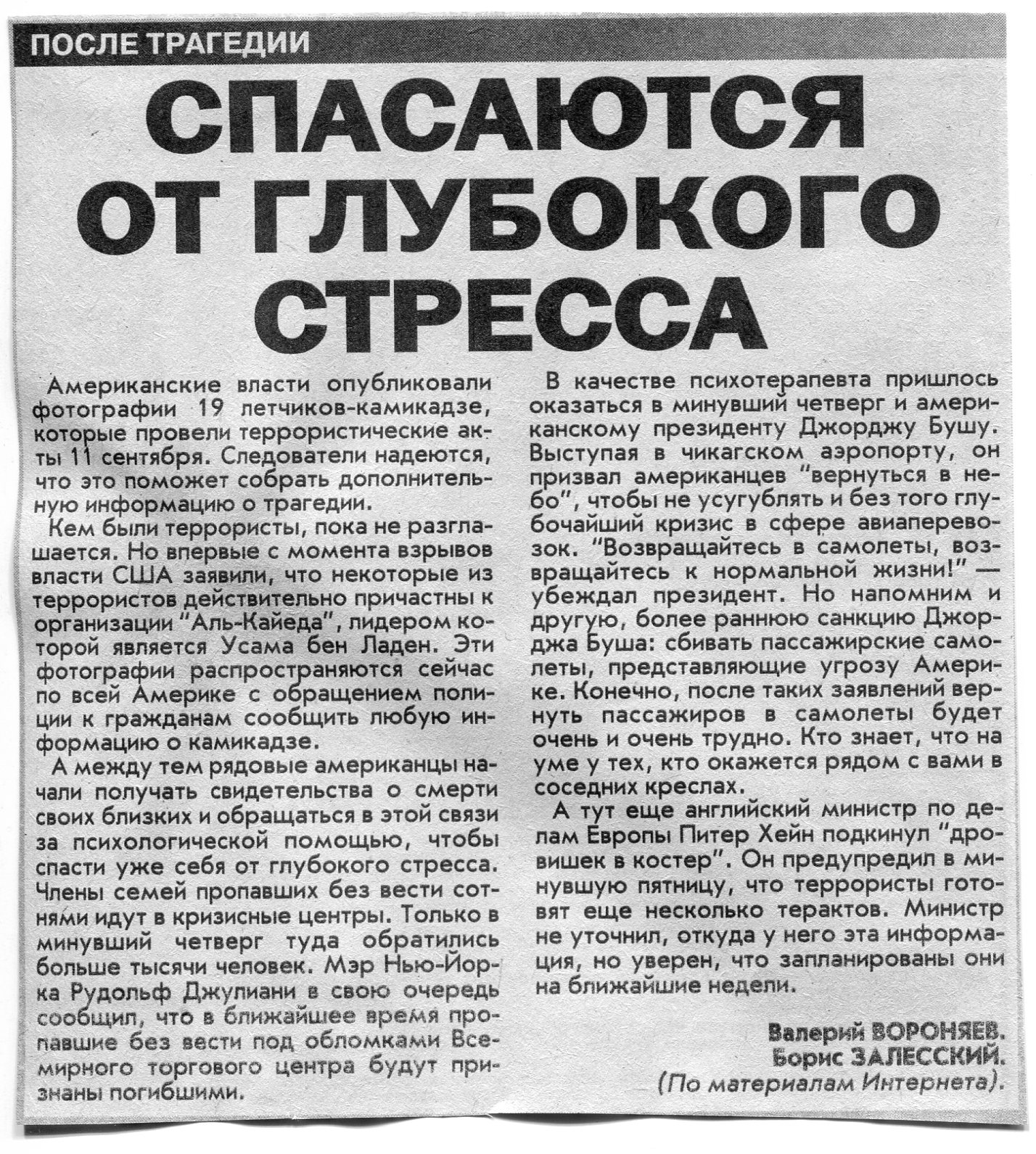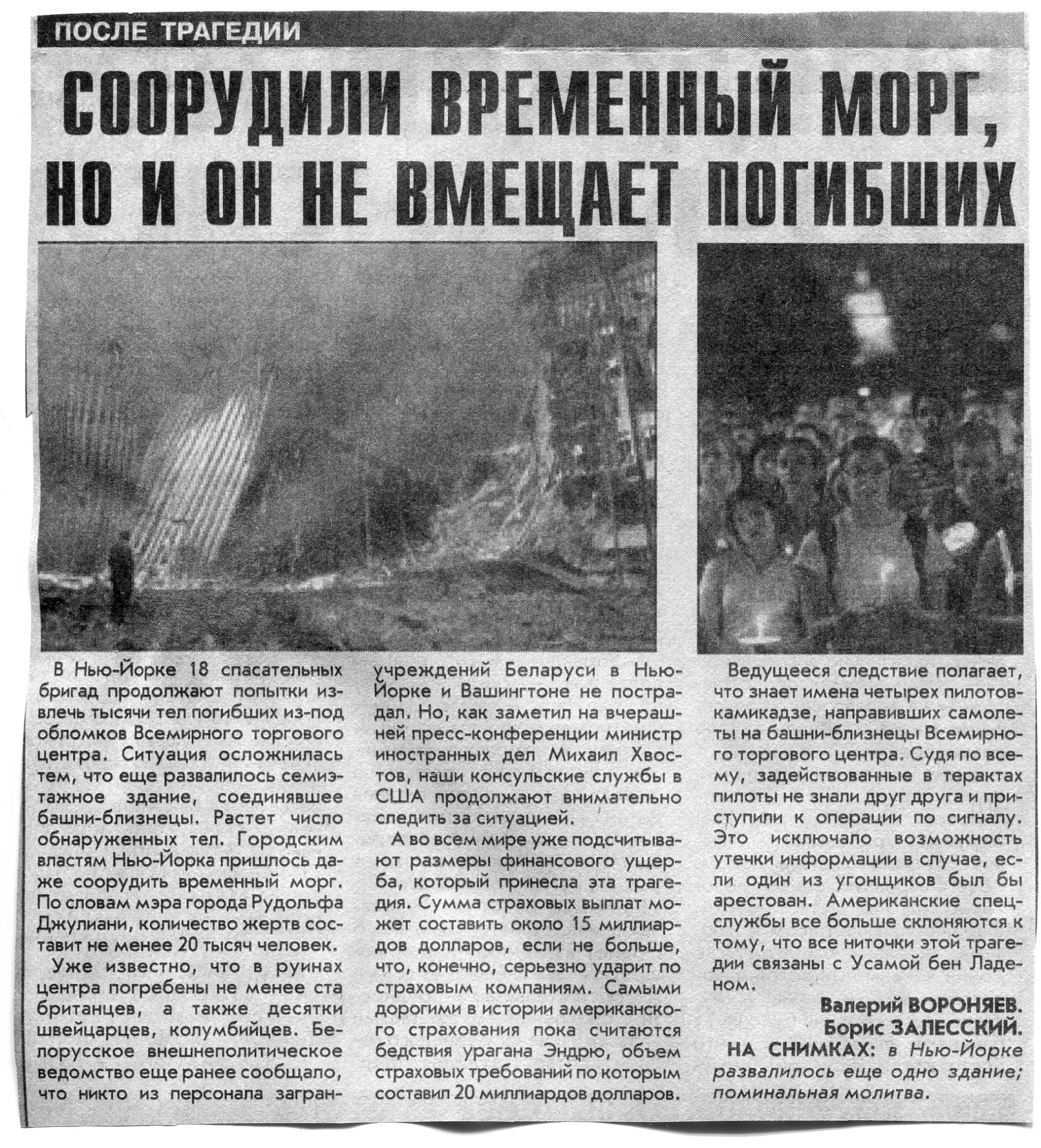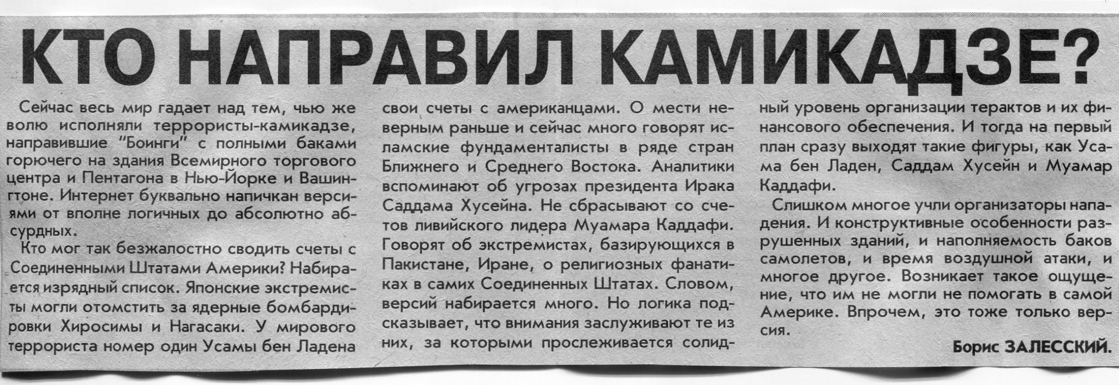 Залесский, Б. Кто направил камикадзе? / Б. Залесский // Вечерний Минск. - 2001. - 13 сент.