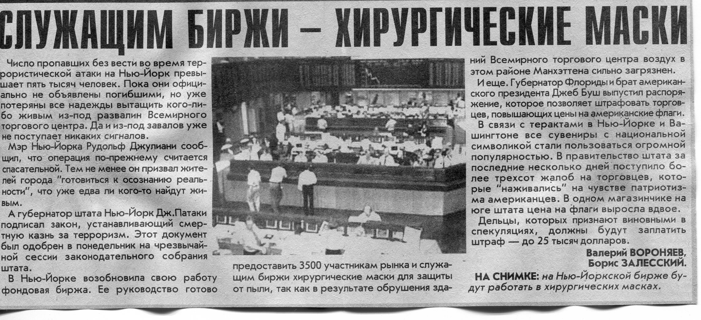 Залесский, Б. Служащим биржи - хирургические маски / Б. Залесский, В. Вороняев // Вечерний Минск. - 2001. - 19 сент.