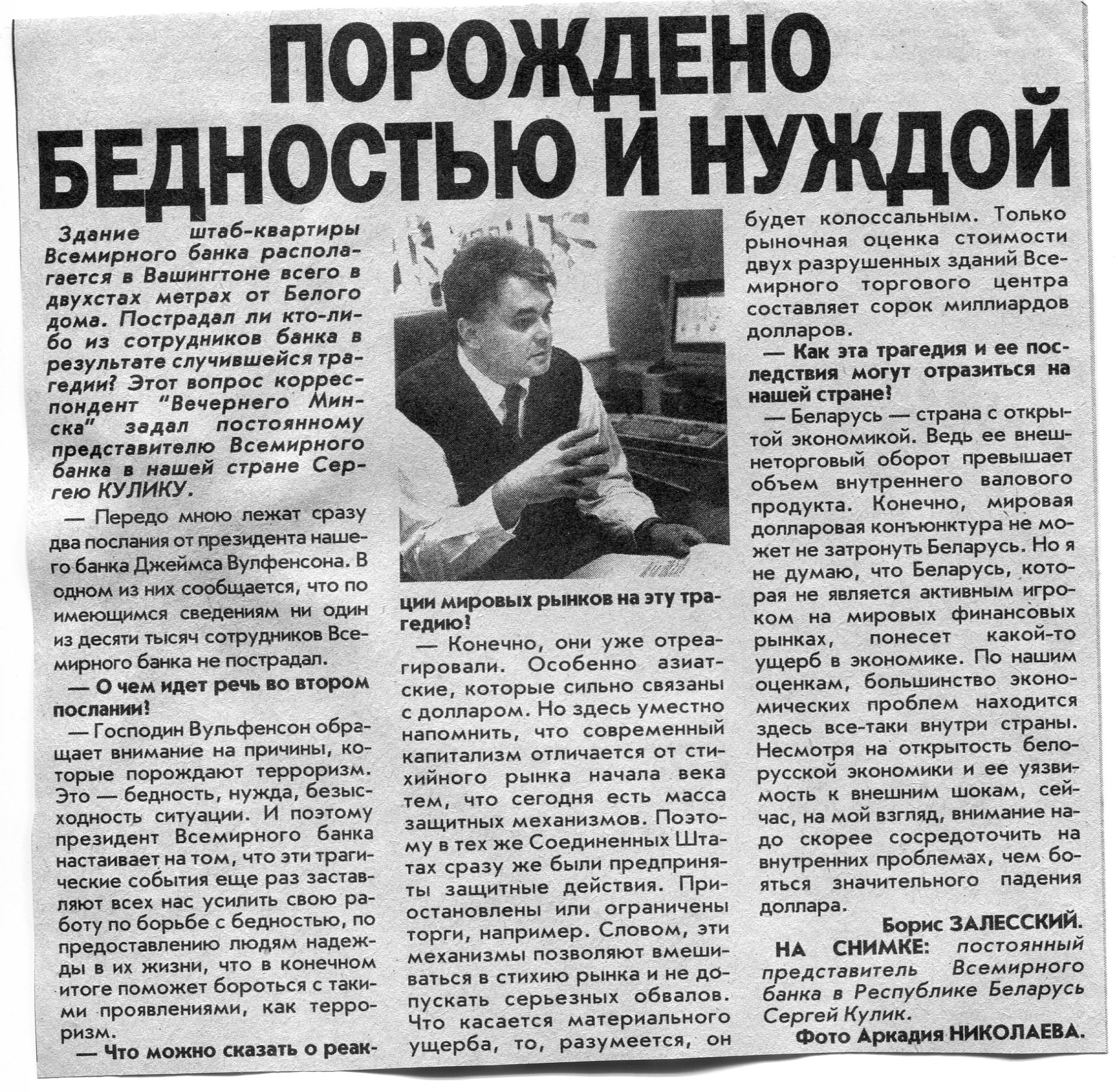 Залесский, Б. Порождено бедностью и нуждой / Б. Залесский // Вечерний Минск. - 2001. - 13 сент.