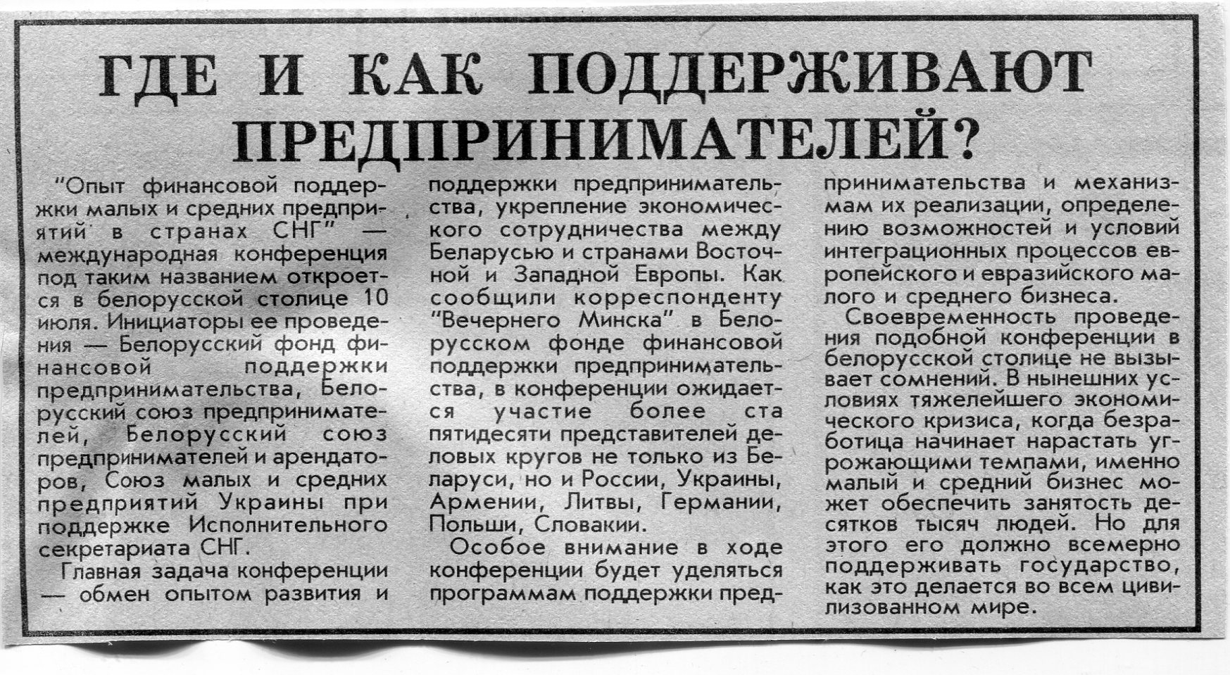 Залесский, Б. Где и как поддерживают предпринимателей? / Б. Залесский // Вечерний Минск. - 1996.- 8 июл.
