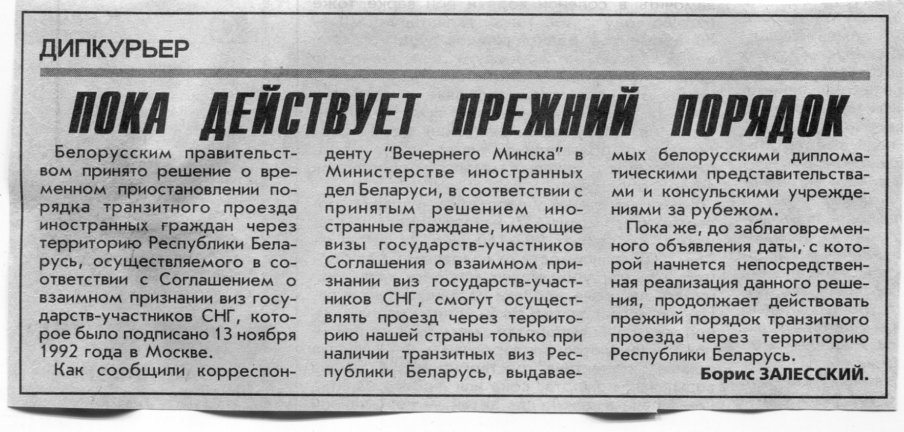 Залесский, Б. Пока действует прежний порядок / Б. Залесский // Вечерний Минск. - 2000. - 20 мар.